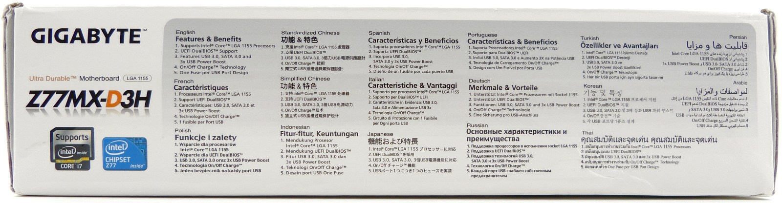 GIGABYTE GA-Z77MX-D3H. Embalaje Vista Lateral Derecha