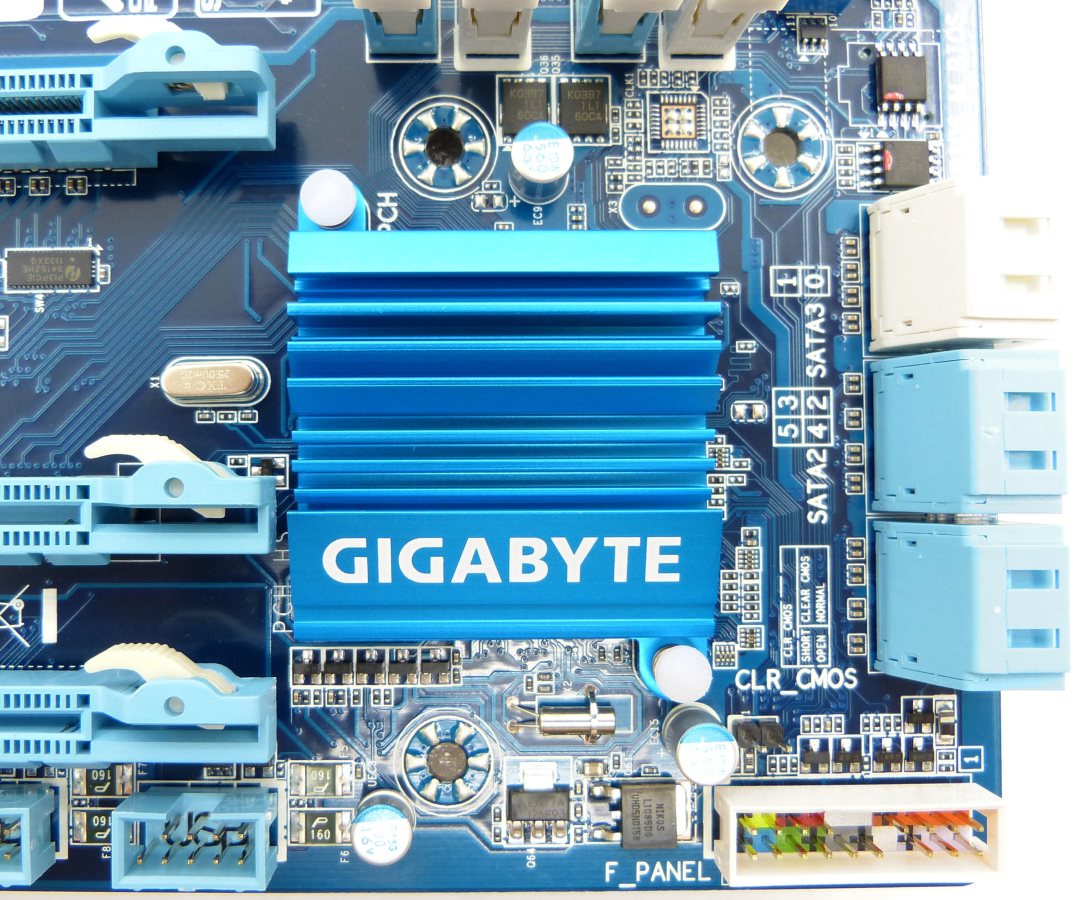 GIGABYTE GA-Z77MX-D3H. Detalle Disipador Mosfets. Aluminio Pintado de Azul