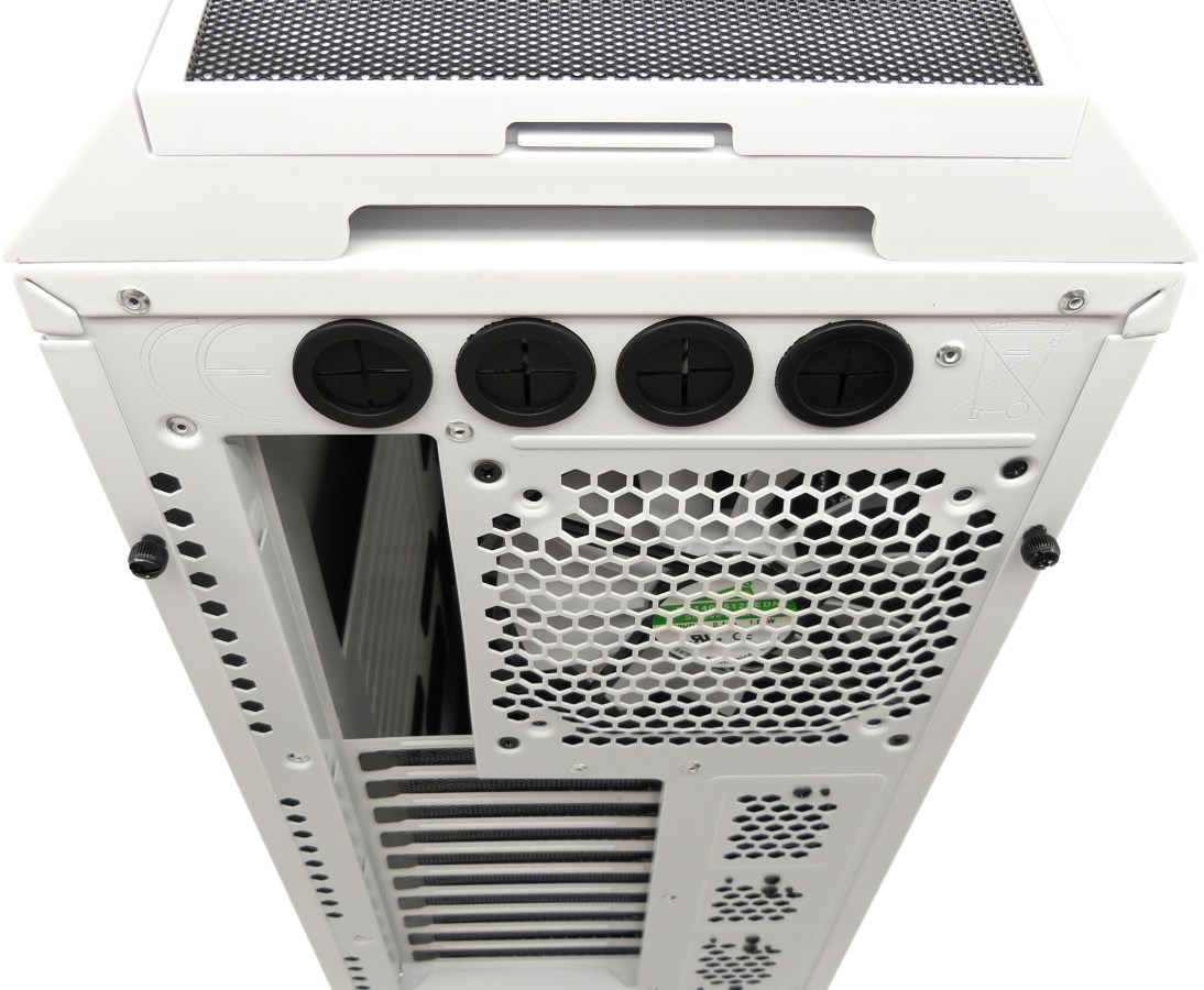 NOX XTREME HUMMER ZERO. Detalle Trasera Superior. Pestaña de Anclaje lomo. 4x Pasatubos de Goma. 1x Ventilador 140mm Preinstalado