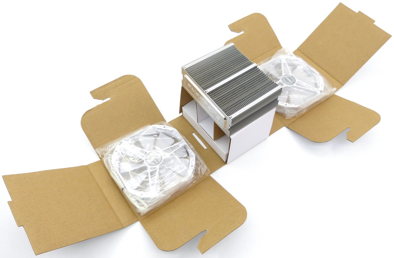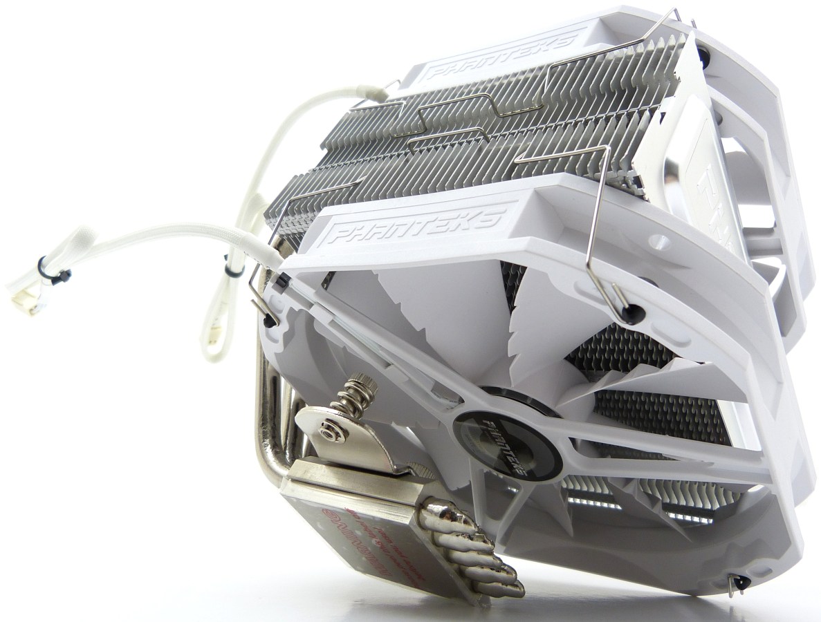 Aunque en general no hay mucha cosa nueva que no hayamos visto ya, lo cierto es que posee algunos «aspectos escondidos», que no se ven a simple vista y que debemos tenerlos presentes. Su tratamiento superficial es francamente bueno, al igual que las uniones entre materiales, el aspecto a nuestro entender más complicado para fabricar (los encajes y soldaduras son fundamentales). Además, los ventiladores tienen un diseño algo novedoso y muy atractivo, destacando su motor (algo que no se ve si no se desarma, pero ahí está), su estructura en brazos triangulares y sus aspas, consiguiendo gran caudal y presión sin pasarse con la sonoridad cercana a los 20dBA, algo que tenemos muy presente para medir su rendimiento. A parte, es del todo importante que los ventiladores encajen lo mejor posible con el disipador para aprovechar el máximo de caudal para refrigerar el disipador, sin huir de la flexibilidad que los usuarios siempre requerimos (podemos montar 1, 2 o ninguno, según el procesador que refrigere). Los ventiladores son ampliamente regulables en horizontal, teniendo como tope los tubos de cobre para el ventilador bajo. No obstante, el disipador tal vez podría ser algo más grande, abarcar más aletas y quizá éstas hasta 4mm más altas. Esto aumentaría ligeramente su rendimiento, aprovechando todavía más parte de la superficie en esquina de los ventiladores que se queda volada respecto al disipador.