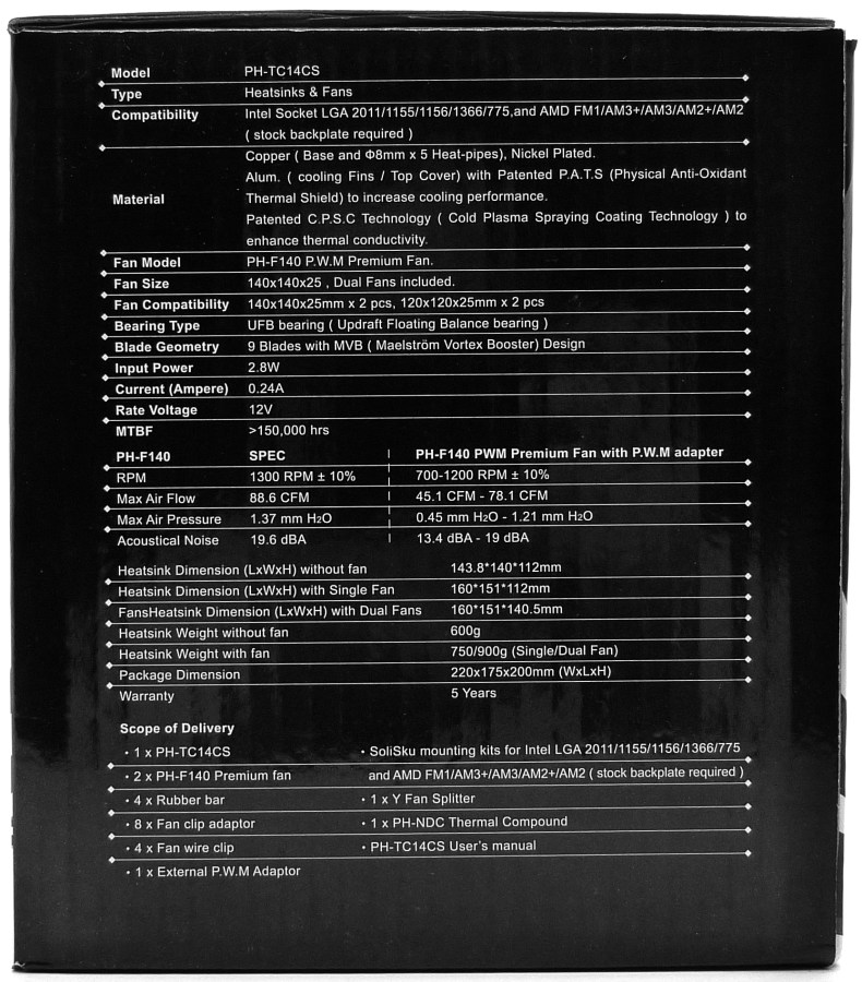 PHANTEKS PH-TC14CS. Embalaje Vista Trasera