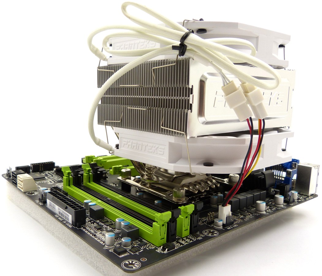 Por lo demás, su montaje es bastante sencillo, y generalmente no dará problemas de encaje contra otros dispositivos, a excepción de los módulos de memoria RAM que equipen disipadores de altas dimensiones, que suele ser un problema común no solo con los disipadores de perfil bajo tipo «C» o tipo «L» que invaden la zona de los bancos de memoria, sino con otros disipadores de perfil de doble torre tipo «U» o tipo «I». Como siempre, el reparto en la placa base tiene la última palabra.