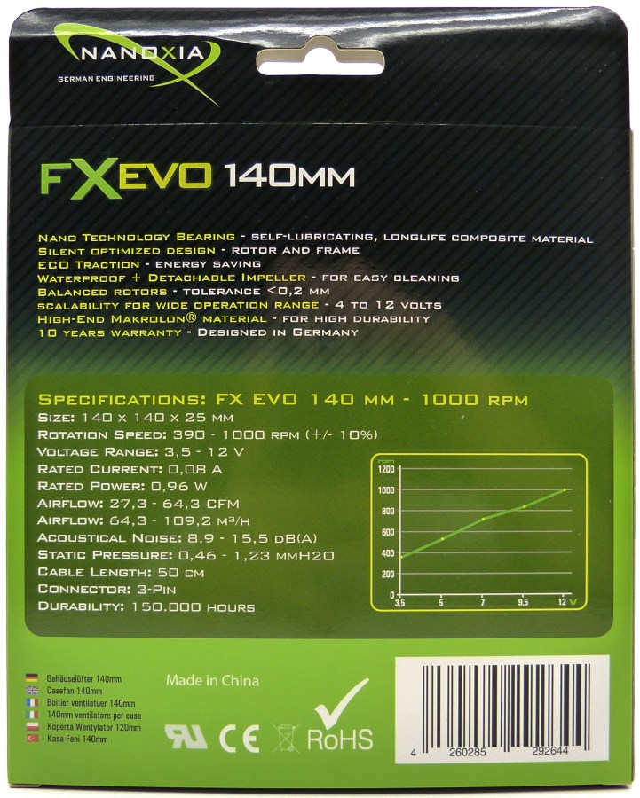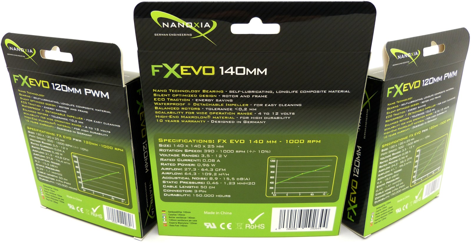NANOXIA FX EVO. Embalaje Vista Trasera Modelo 140mm IFC 1000 RPM