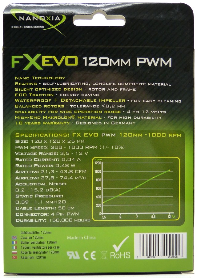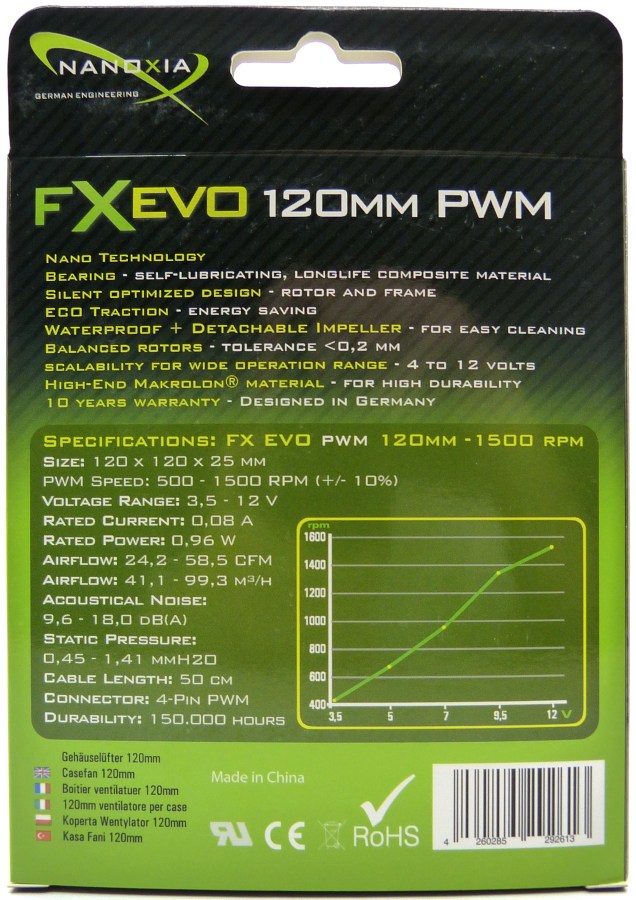 NANOXIA FX EVO. Embalaje Vista Trasera Modelo 120mm PWM 1500 RPM