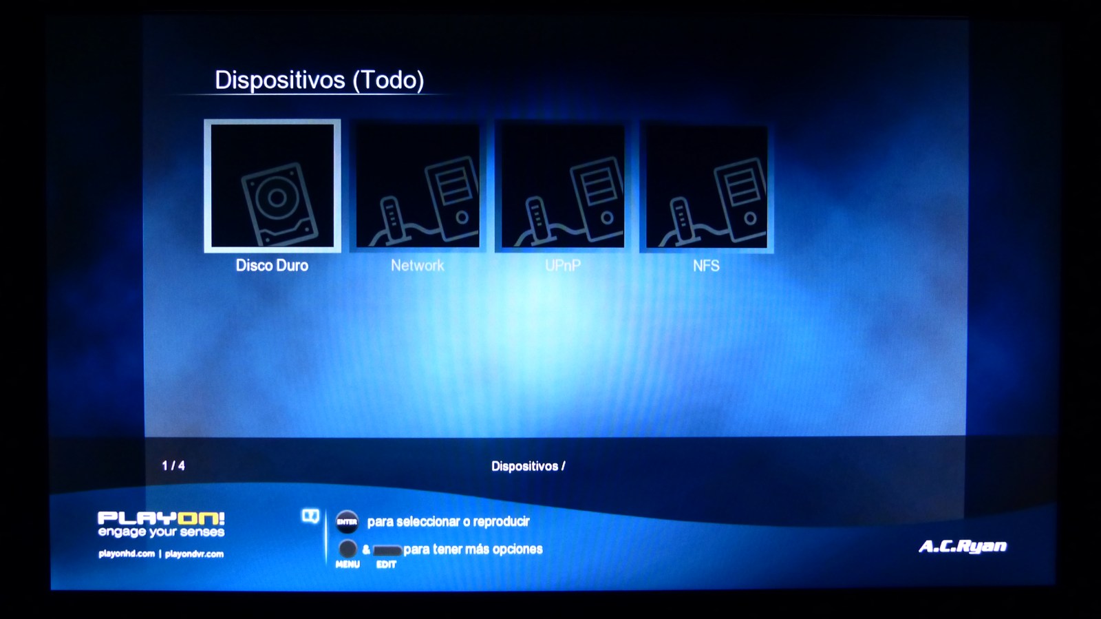 A. C. RYAN PLAYON! HD2. Captura Interfaz GUI 2.0 Menú Dispositivos
