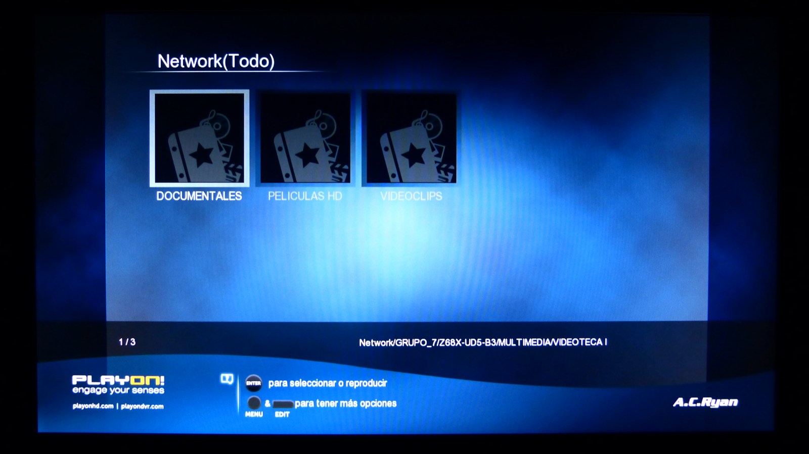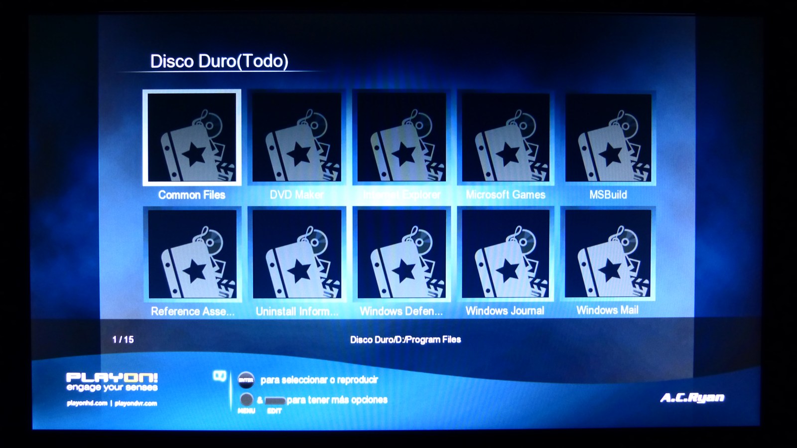 A. C. RYAN PLAYON! HD2. Captura Interfaz GUI 2.0 Navegación Interna por Disco Duro SATAII