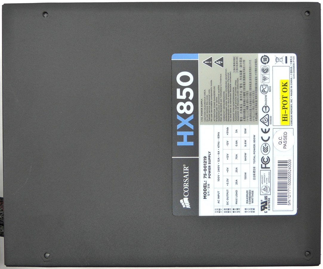 CORSAIR HX850 80PLUS GOLD. Fuente Vista Superior. Pegatina Especificaciones Técnicas