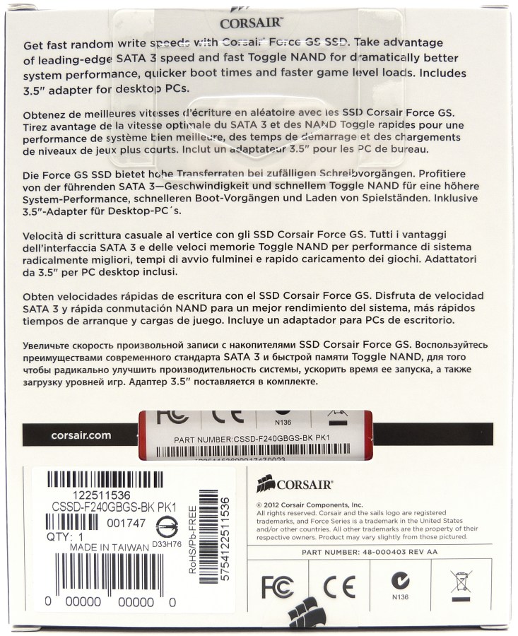 CORSAIR FORCE GS 240GB. Embalaje Vista Trasera