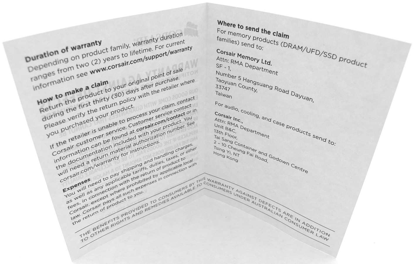CORSAIR FORCE GS 240GB. Folleto de Garantía Desplegado