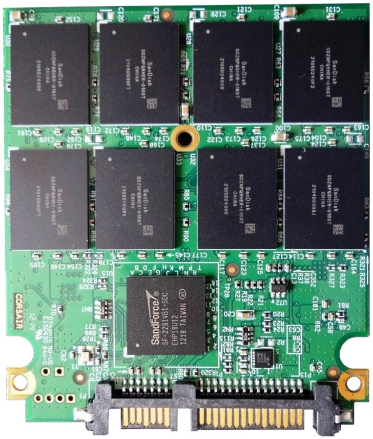 CORSAIR FORCE GS 240GB. Detalle Electrónica Interior. Controladora SandForce y Memorias Flash NAND Toogle SanDisk