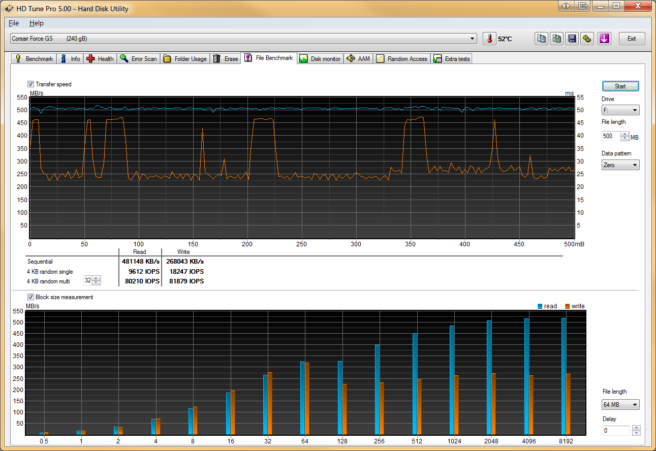 CORSAIR FORCE GS 240GB. Software HD Tune Pro v5.00. Test de Rendimiento «File Benchmark»