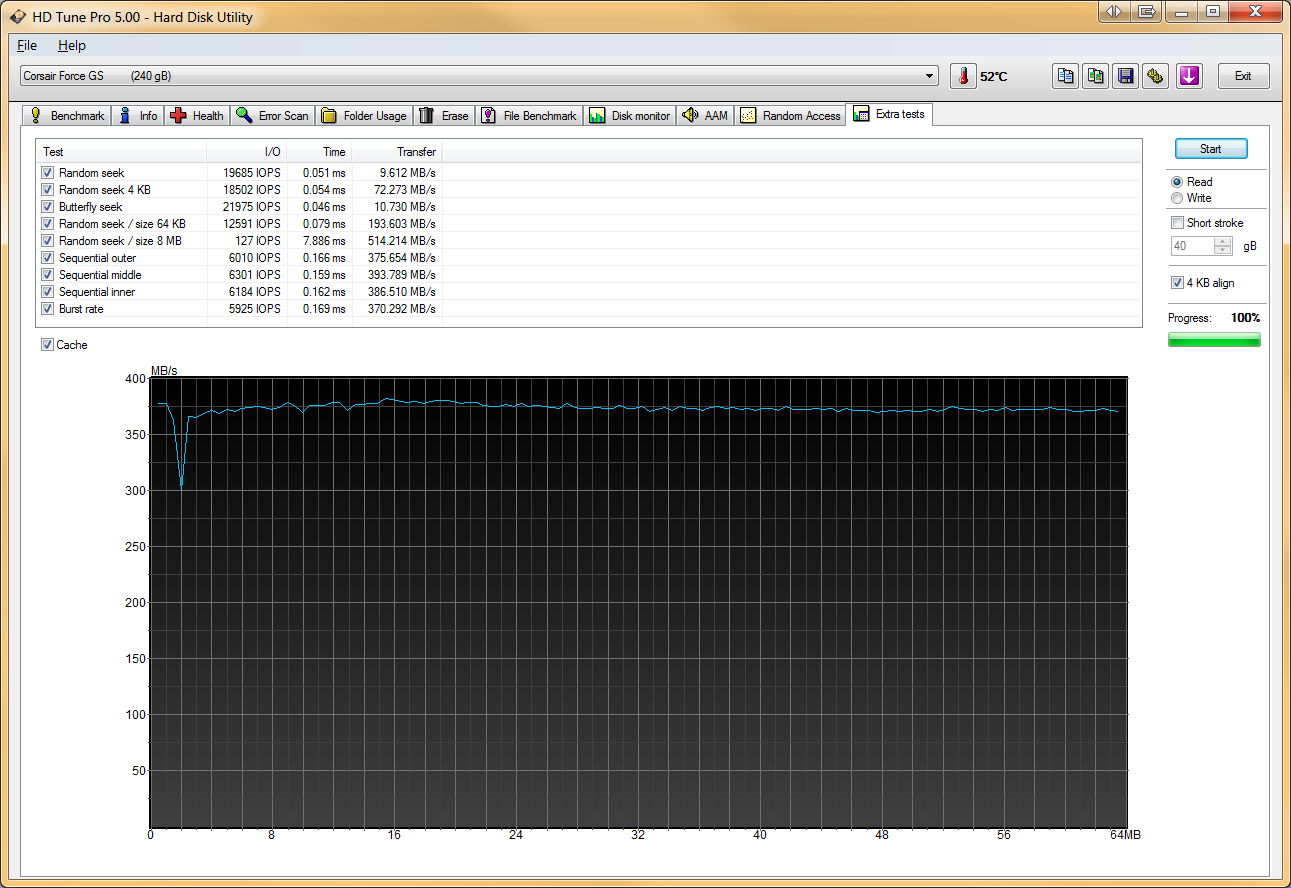 CORSAIR FORCE GS 240GB. Software HD Tune Pro v5.00. Test de Rendimiento «Extra Tests»