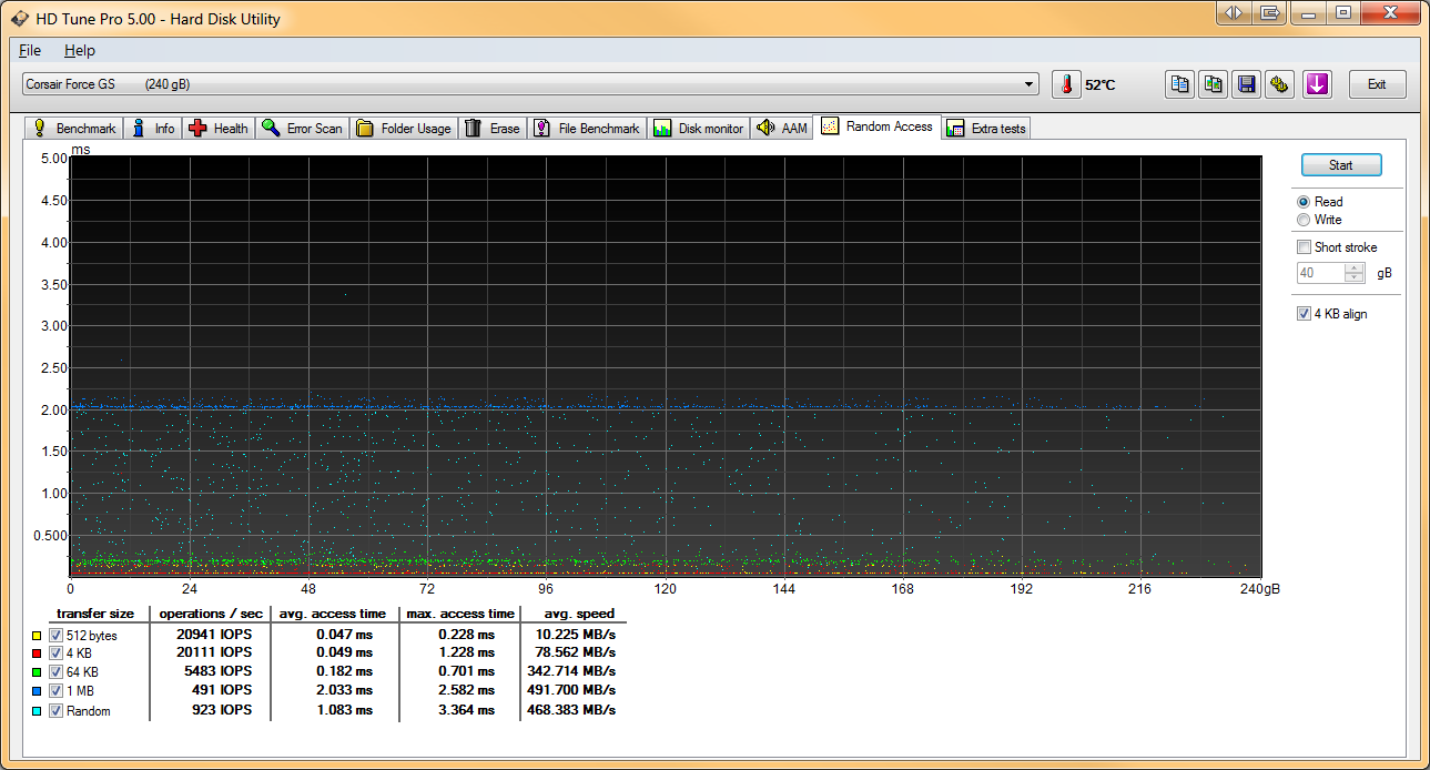 CORSAIR FORCE GS 240GB. Software HD Tune Pro v5.00. Test de Rendimiento «Random Access»