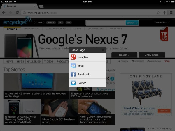 Si bien el gigante de las búsquedas por internet, Google, no ha sabido complacer al público de dispositivos móviles de Apple con su aplicación oficial para iOS de su plataforma de correo electrónico GMail, este no es el caso de Google Chrome para iOS, un navegador que inclusive ha impactado en la cuota de Safari móvil (aunque aún no lo supera), y en el caso del iPad, parece ser el favorito de sus usuarios.