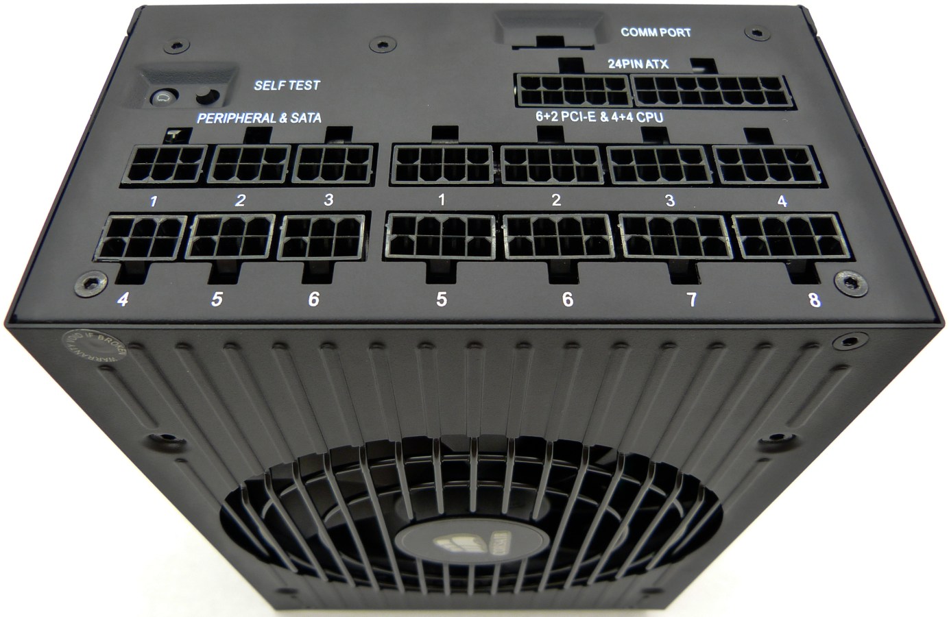 CORSAIR AX1200I. Detalle Relieve Panel Frontal de Conexiones