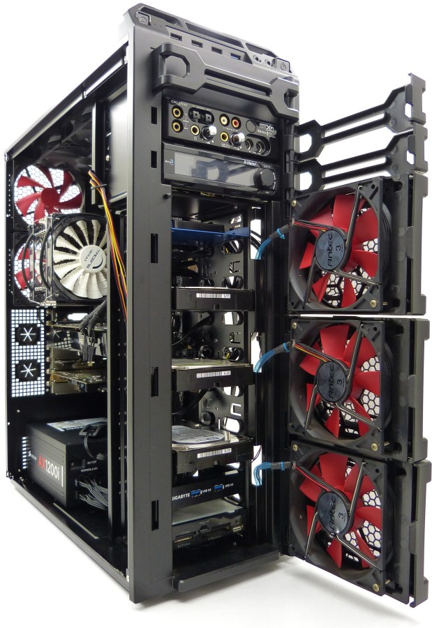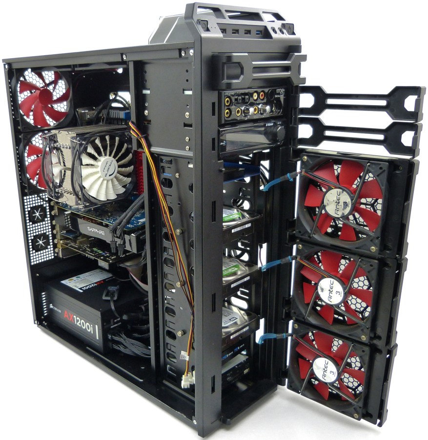 CORSAIR AX1200I. Ordenador de Pruebas Vista en Perspectiva Lateral. Lateral Izquierdo Desarmado + Frontales Abiertos
