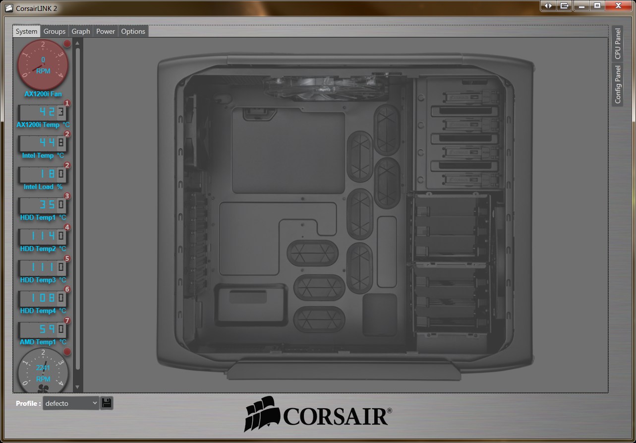 CORSAIR AX1200I. Captura Software Corsair Link 2 v2.0.15 Beta. Sección de «Groups»