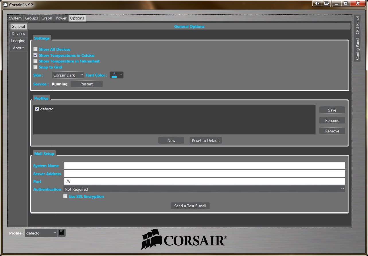 CORSAIR AX1200I. Captura Software Corsair Link 2 v2.0.15 Beta. Sección de «Options/General»