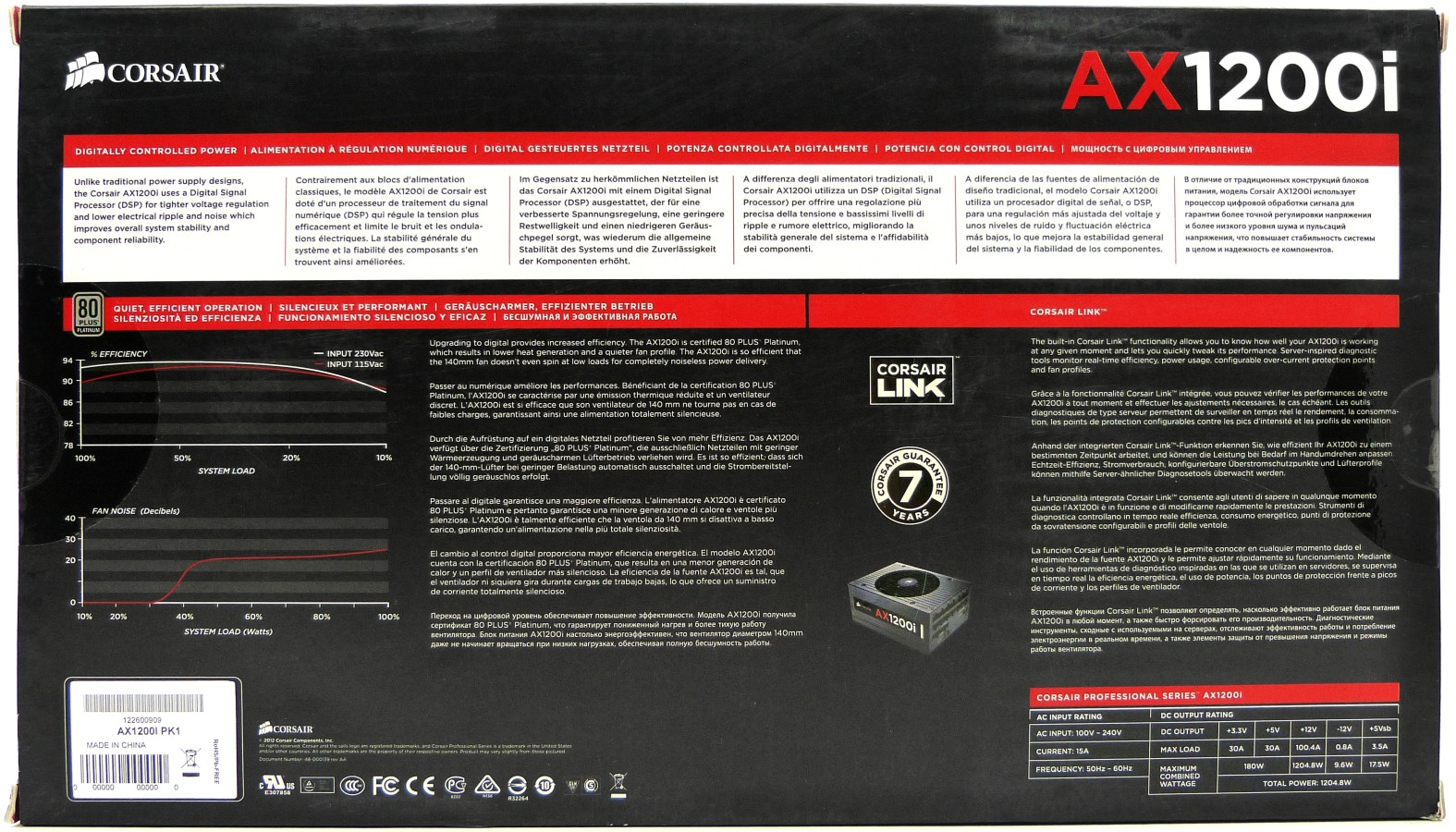 CORSAIR AX1200I. Embalaje Vista Trasera