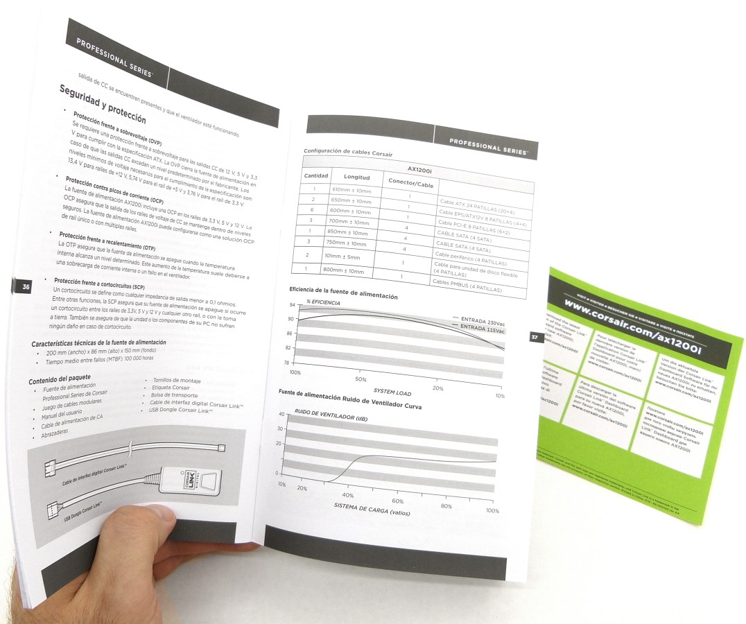CORSAIR AX1200I. Detalle Manual de Instrucciones Multiidioma Desplegado + Folleto de Garantía