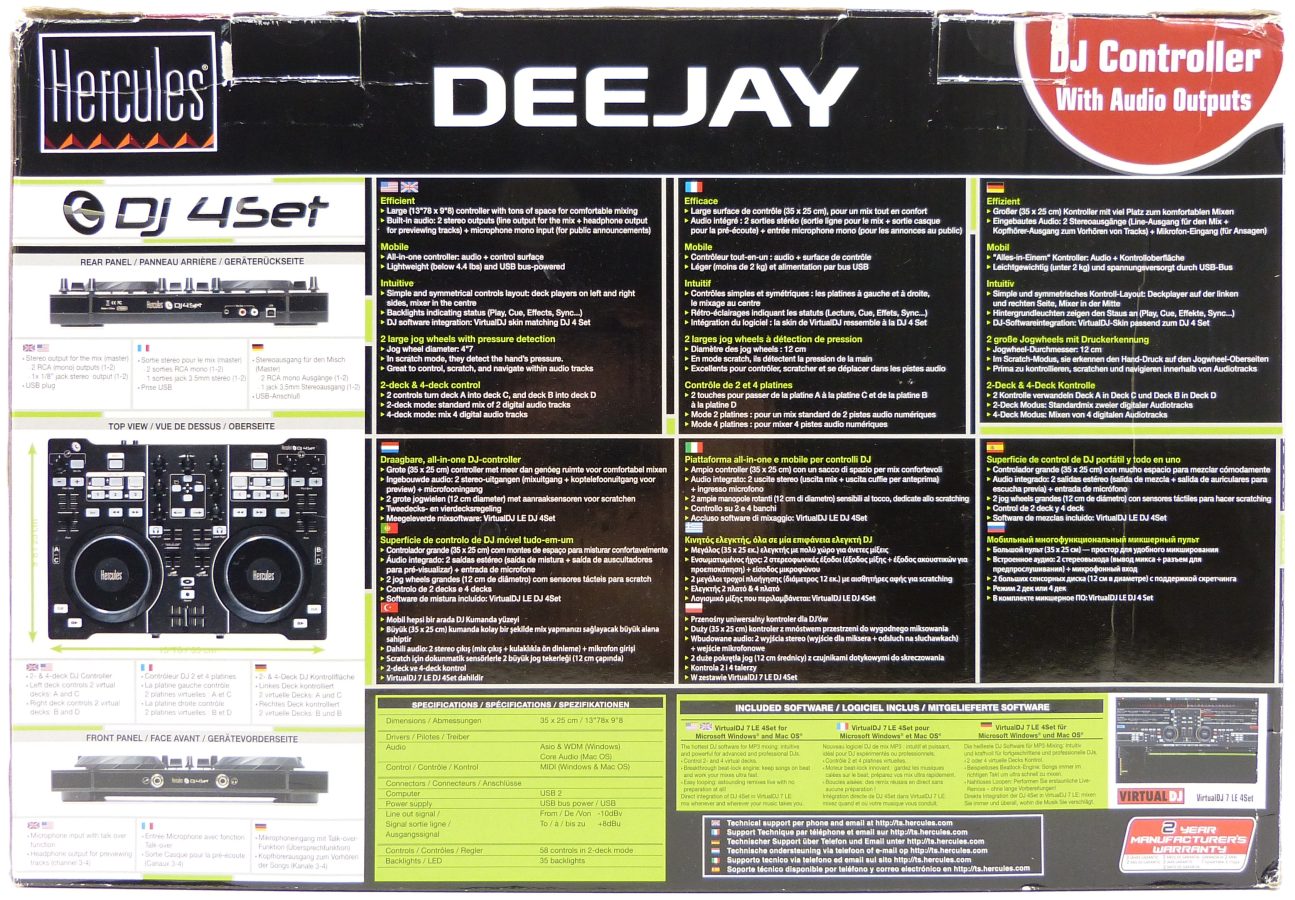 HERCULES DJ 4SET. Embalaje Vista Trasera