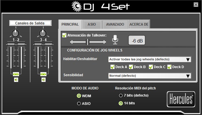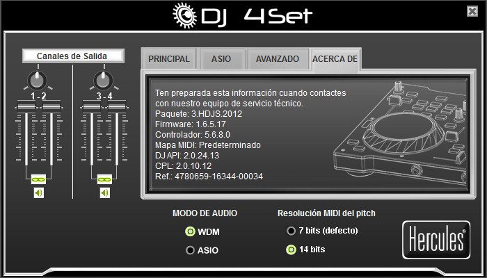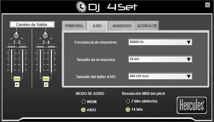 HERCULES DJ 4SET. Captura Consola DJ 4Set. «Sección Asio»