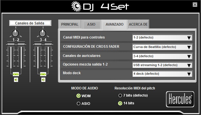 HERCULES DJ 4SET. Captura Consola DJ 4Set. Sección «Avanzado»