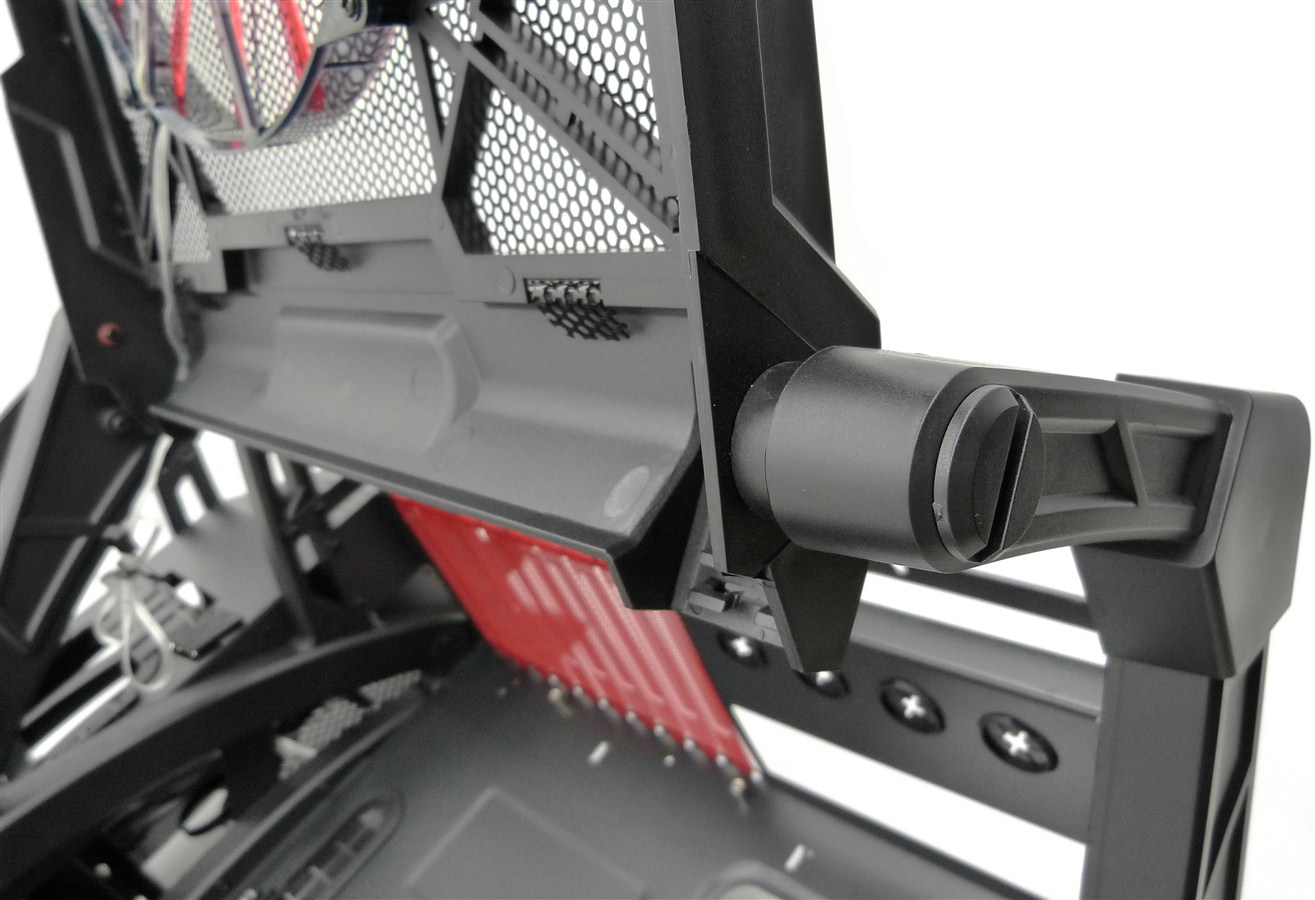 AEROCOOL STRIKE-X AIR. Detalle Eje de Abatimiento de la Tapa Principal, Armada en el Interior con Tornillería