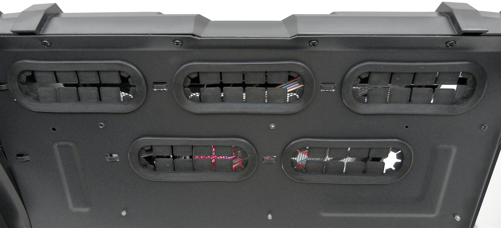 AEROCOOL STRIKE-X AIR. Detalle Orificios con Protecciones de Goma para Pasar Cables (x5 + 1)