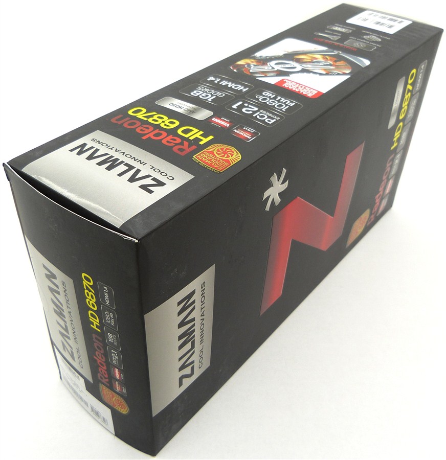 La tarjeta gráfica Zalman HD6870-Z viene presentada a través de un embalaje preparado para tarjetas gráficas de gran tamaño. La mayoría de información del embalaje va referido a las características de una tarjeta gráfica de gama media-alta, dejando un poco de lado las especificaciones más técnicas del dispositivo principal. Especificaciones como las dimensiones, peso, sonoridad, consumo y MTBF de la tarjeta gráfica, son información fundamental para cualquier usuario interesado en comprar una tarjeta gráfica. Así que de entrada, algo más de información en este sentido hubiera estado acertado. Ocurrió lo mismo con el embalaje de la HD6770-Z, siendo muy similar a éste.