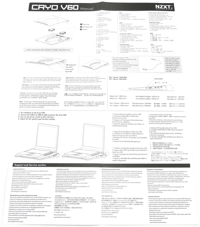 NZXT CRYO V60. Detalle Despliegue Guía del Usuario Multiidioma