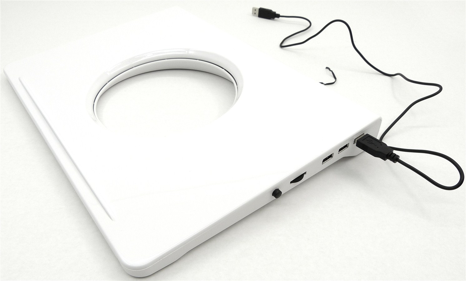 NZXT CRYO V60. Fotografía de Exposición III. Base con Cable USB Conectado y Desplegado