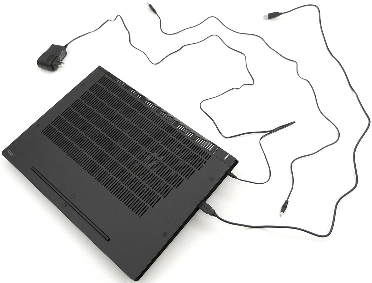 NZXT CRYO X60. Fotografía de Exposición III. Base con Cable USB Conectado y Desplegado