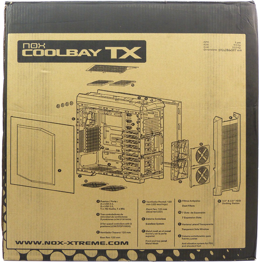 NOX XTREME COOLBAY TX. Embalaje Vista Trasera. Desglose del Producto