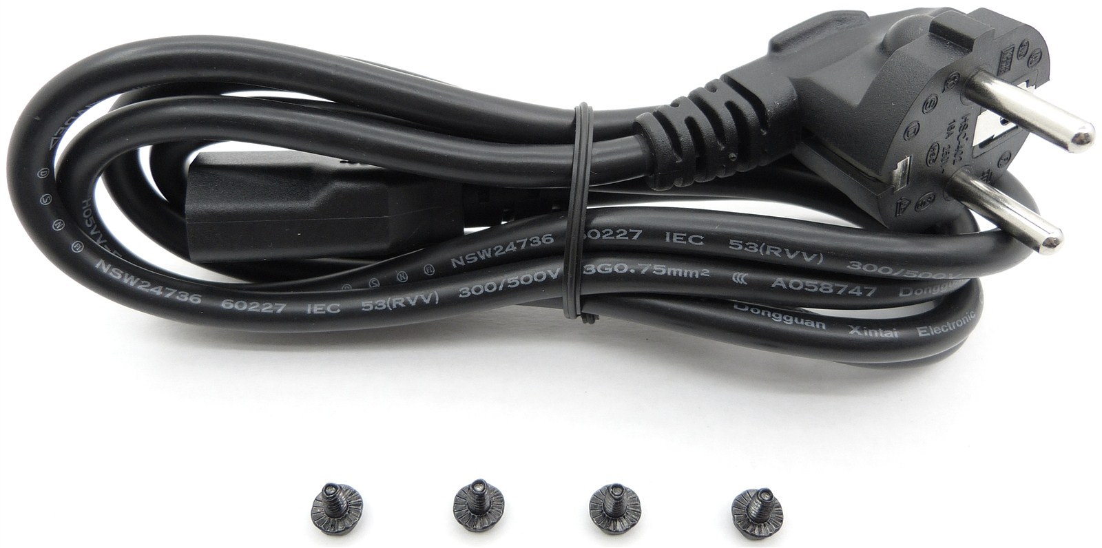 NOX XTREME URANO TX 850W. Detalle Cable de Alimentación de CA y Kit de Tornillos (x4)