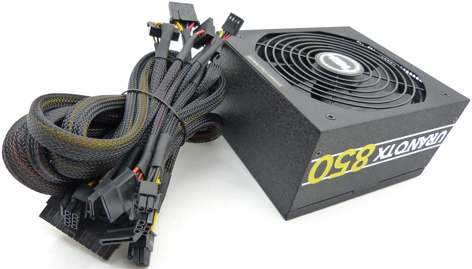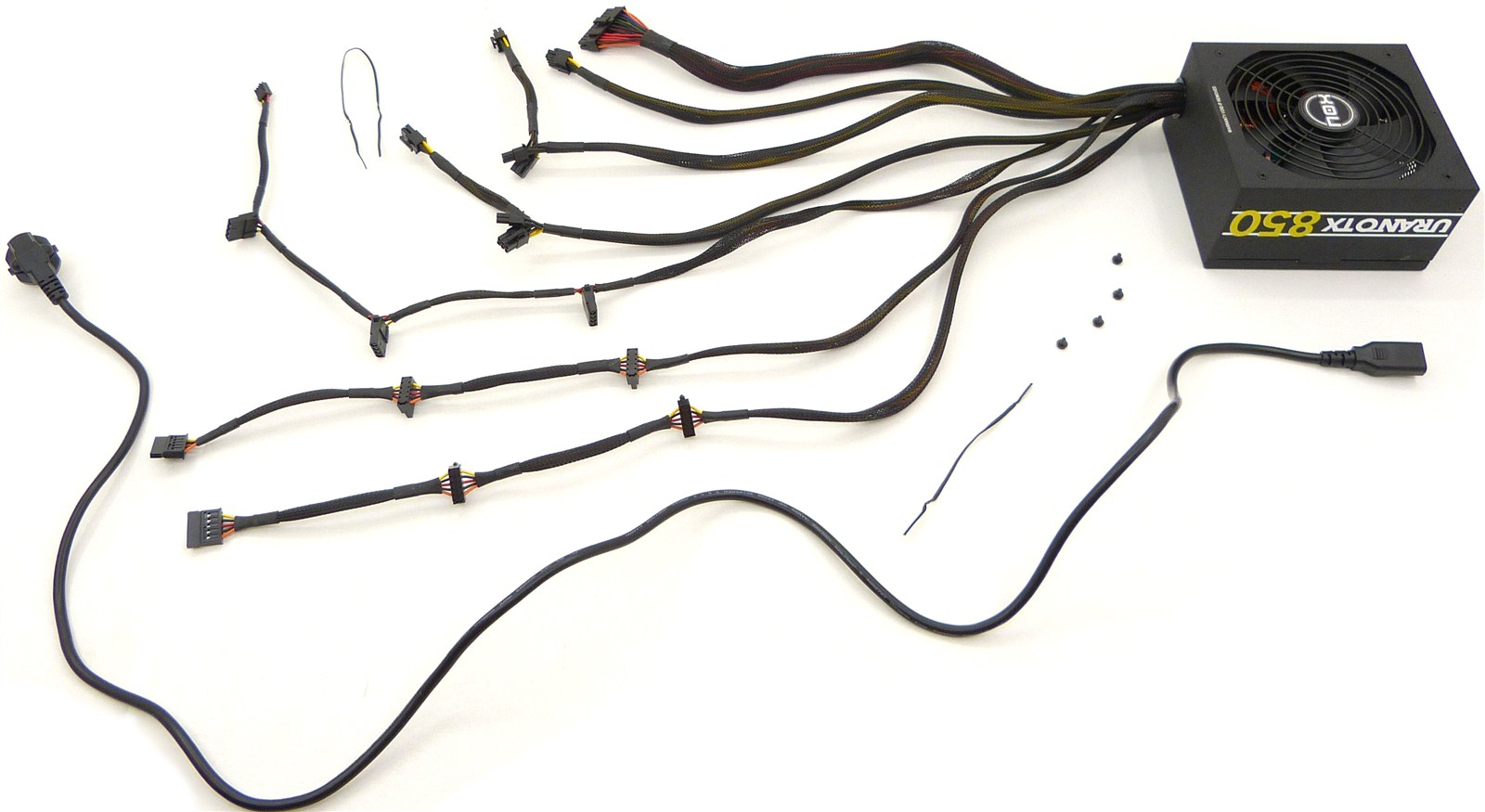 - Urano TX 850, con 3 molex para periféricos, 6 SATA y 4 PCI-e (2 de 6 contactos y otros 2 de 6+2 contactos), 1 floppy y los típicos para CPU de 4+4 contactos y el de 24 contactos para placa base.