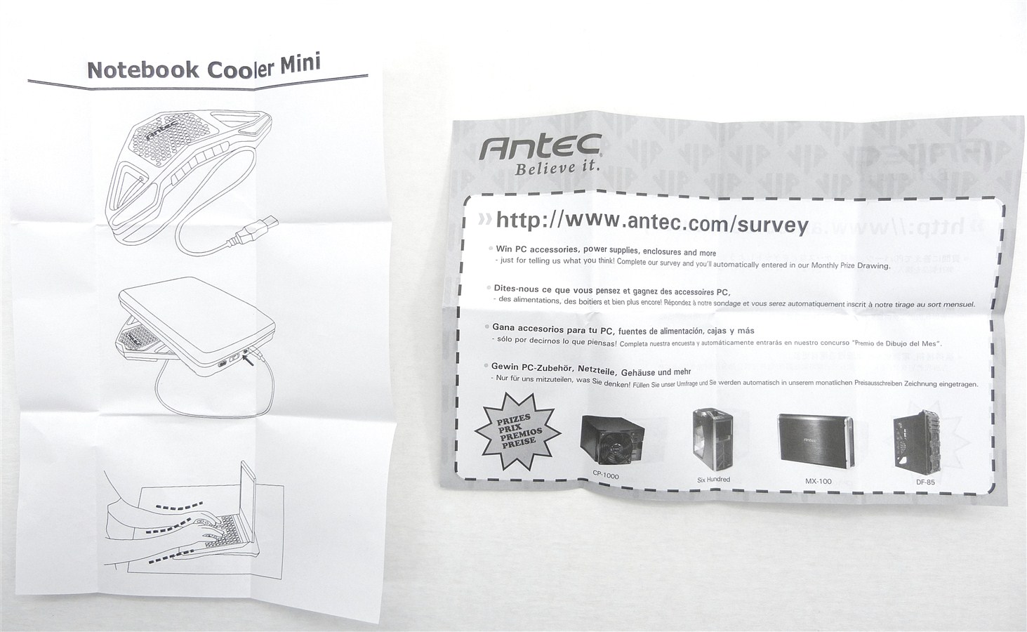 ANTEC NOTEBOOK COOLER MINI. Detalle Manual de instrucciones Desplegado. Folleto de Sorteos Antec