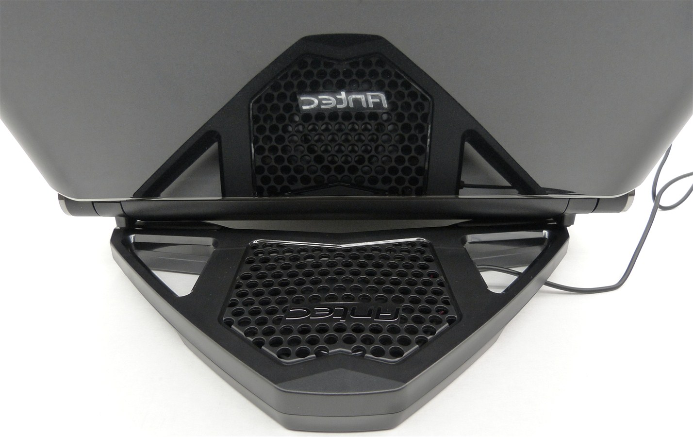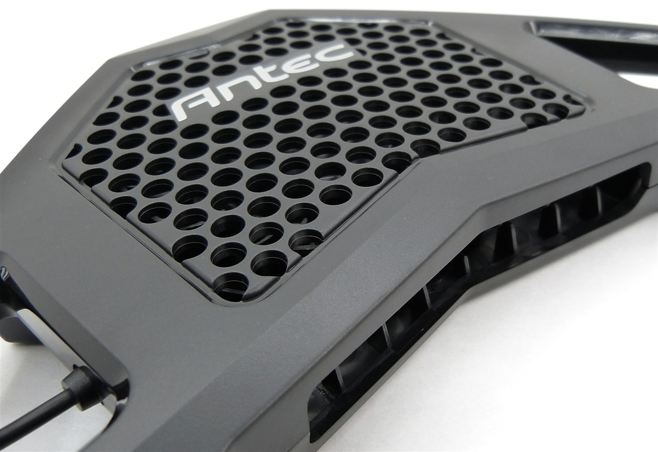 ANTEC NOTEBOOK COOLER MINI. Detalle Entrada del Blower con Rejilla Metálica Protectora y Salida