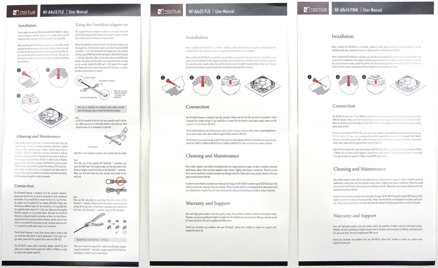 NOCTUA Serie NF-A. Detalle Manuales de Instrucciones Desplegado