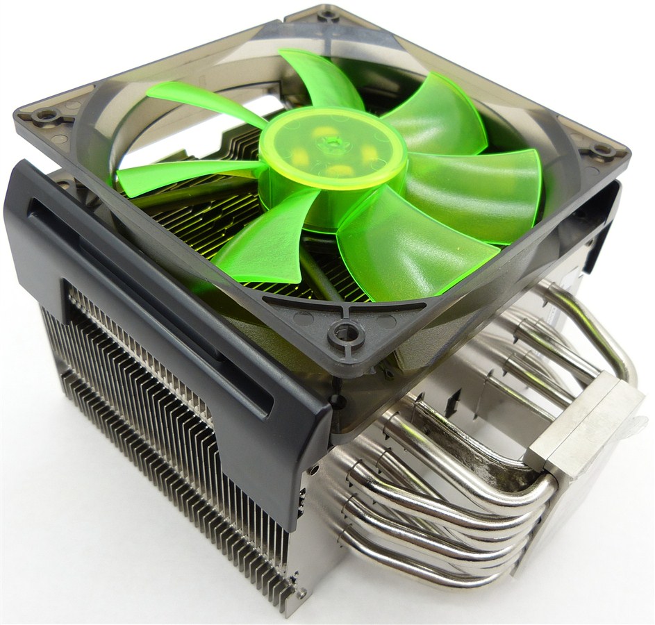 El disipador tiene un excelente acabado. Está formado por 3+3 tubos de cobre en forma de «U», y una cámara de vapor también en forma de «U» dividida en dos piezas que recorre prácticamente todo el profundo del disipador. Tanto los tubos como la cámara se unen a la base de cobre. El acabado es de níquel plata, con una chapa superior reforzada con cuatro tornillos perimetrales, y recubrimientos de metal para las terminaciones de los tubos (6+6) y la cámara 1+1. Está formado por un total de 44 láminas de aluminio más la del recubrimiento superior. La base está perfectamente pulida y adecuada para su instalación con el compuesto térmico incluido. La unión de los tubos y la cámara con la base es de bastante calidad.