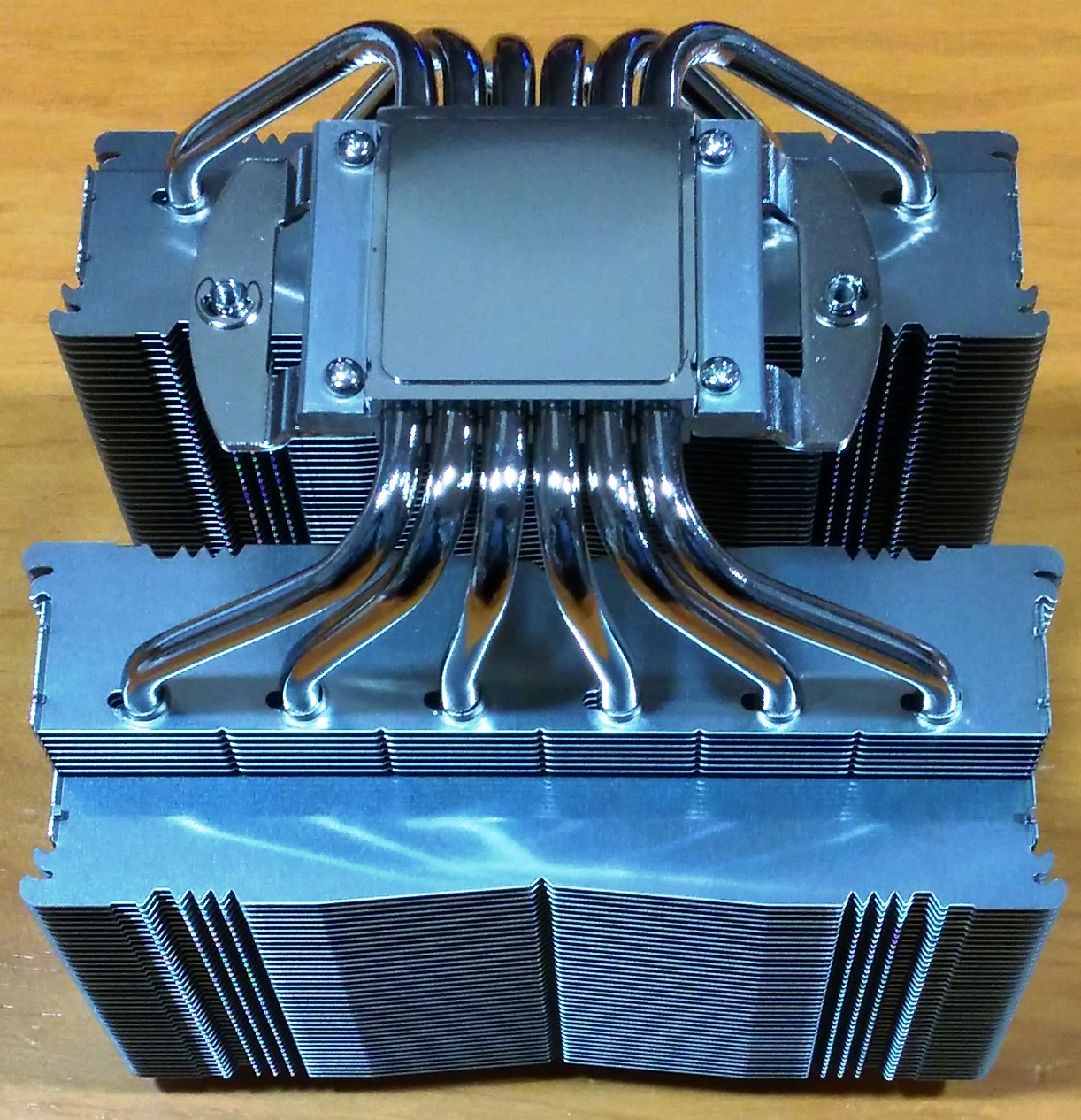 Si hacemos un repaso a su diseño, este está realizado sobre una doble torre formada con tubos de cobre en configuración en “U” ramificados hacia el centro de la base. La base está formada por dos piezas de cobre, que se unen a modo de sandwitch, abrazando a cada tubo. Y no se puede olvidar el perfecto pulido de la base de cobre que estará en contacto con la CPU, o mejor dicho, con el compuesto térmico. Es en esta zona donde hemos detectado mejor perfección.