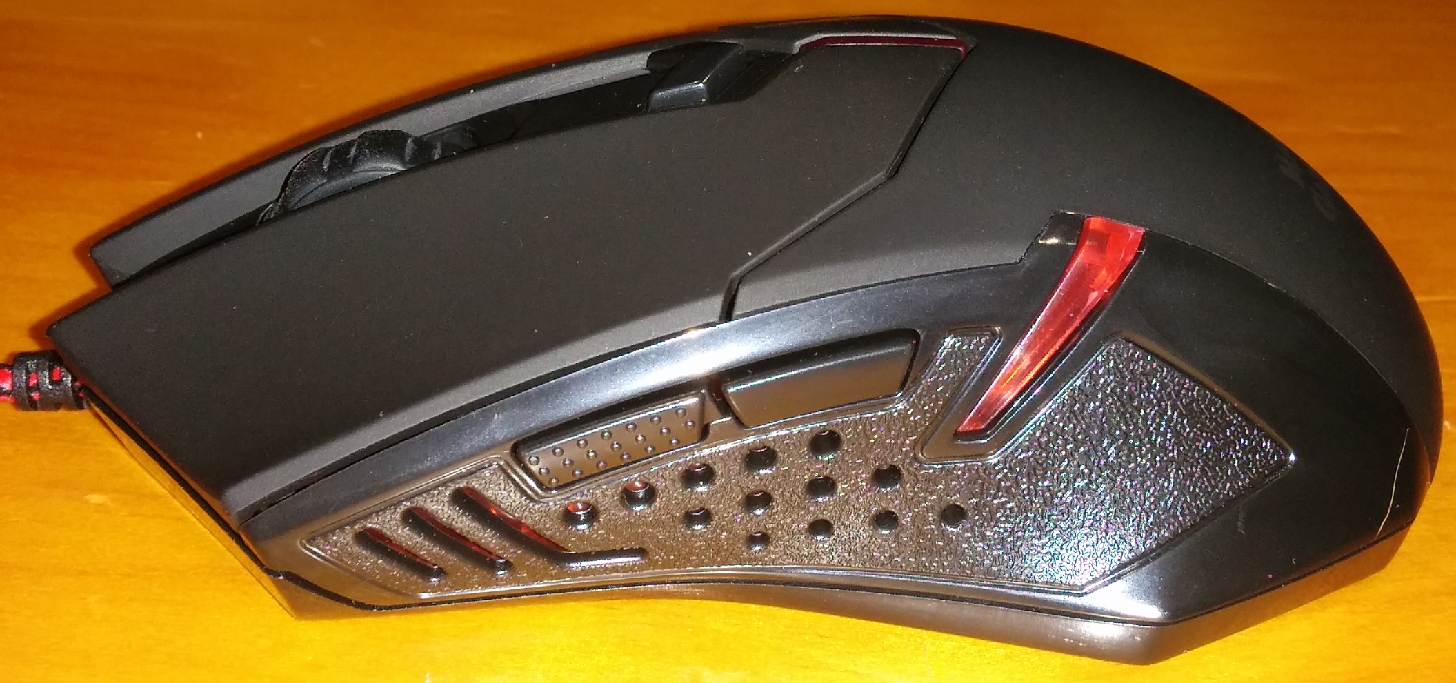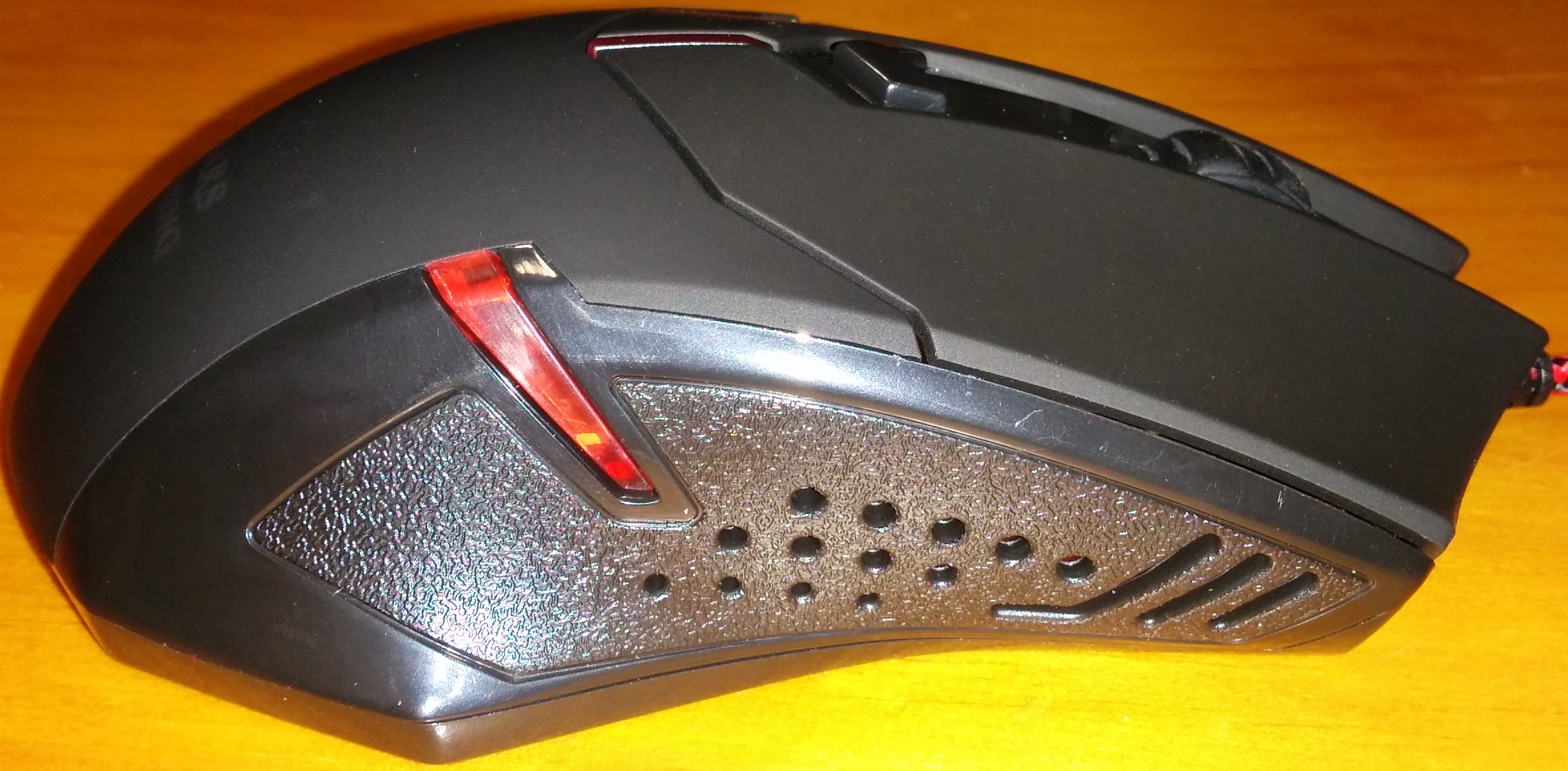 El ratón del MCP2 trae un total de 6 botones, los dos típicos derecho e izquierdo, el del scroll/rueda de desplazamiento, el del cambio de sensibilidad del sensor óptico que se encuentra detrás del scroll (permitiendo cambiar de 800 a 2800 DPI de forma rápida), y dos botones en el lateral izquierdo situados muy correctamente para ser pulsados cómodamente con el pulgar.