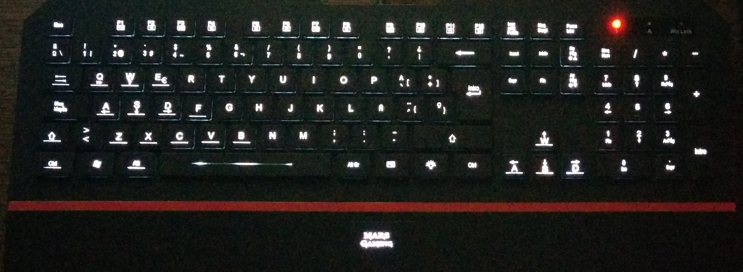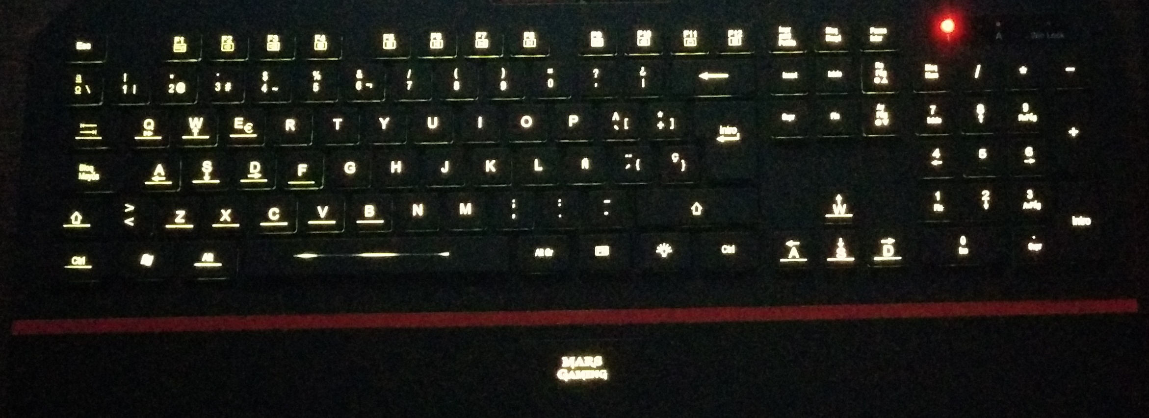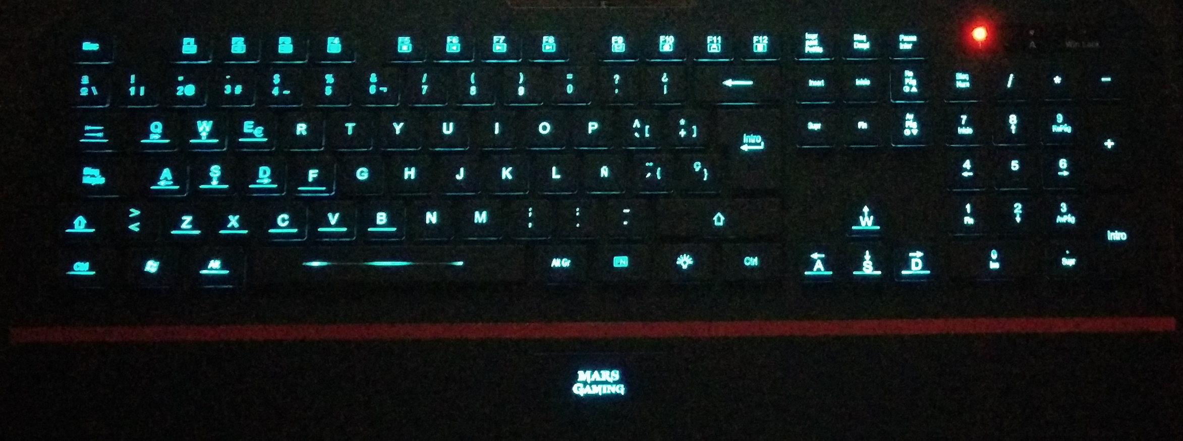 El teclado del combo MCP2 de Mars Gaming, marca de Tacens, tiene un sistema de retroiluminación en 7 colores con tecnología light-focus para una visibilidad perfecta. Estos colores se pueden cambiar pulsando una tecla específica que se encuentra en el lado derecho de la barra espaciadora, como ya comentamos anteriormente, y dichos colores son los siguientes: Rojo, azul fuerte, verde, rosa, azul claro, amarillo y blanco. Además, tiene un modo respiración que va cambiando de color dándole a la misma combinación de teclas de cambio de color: Fn+la tecla de iluminación de colores.