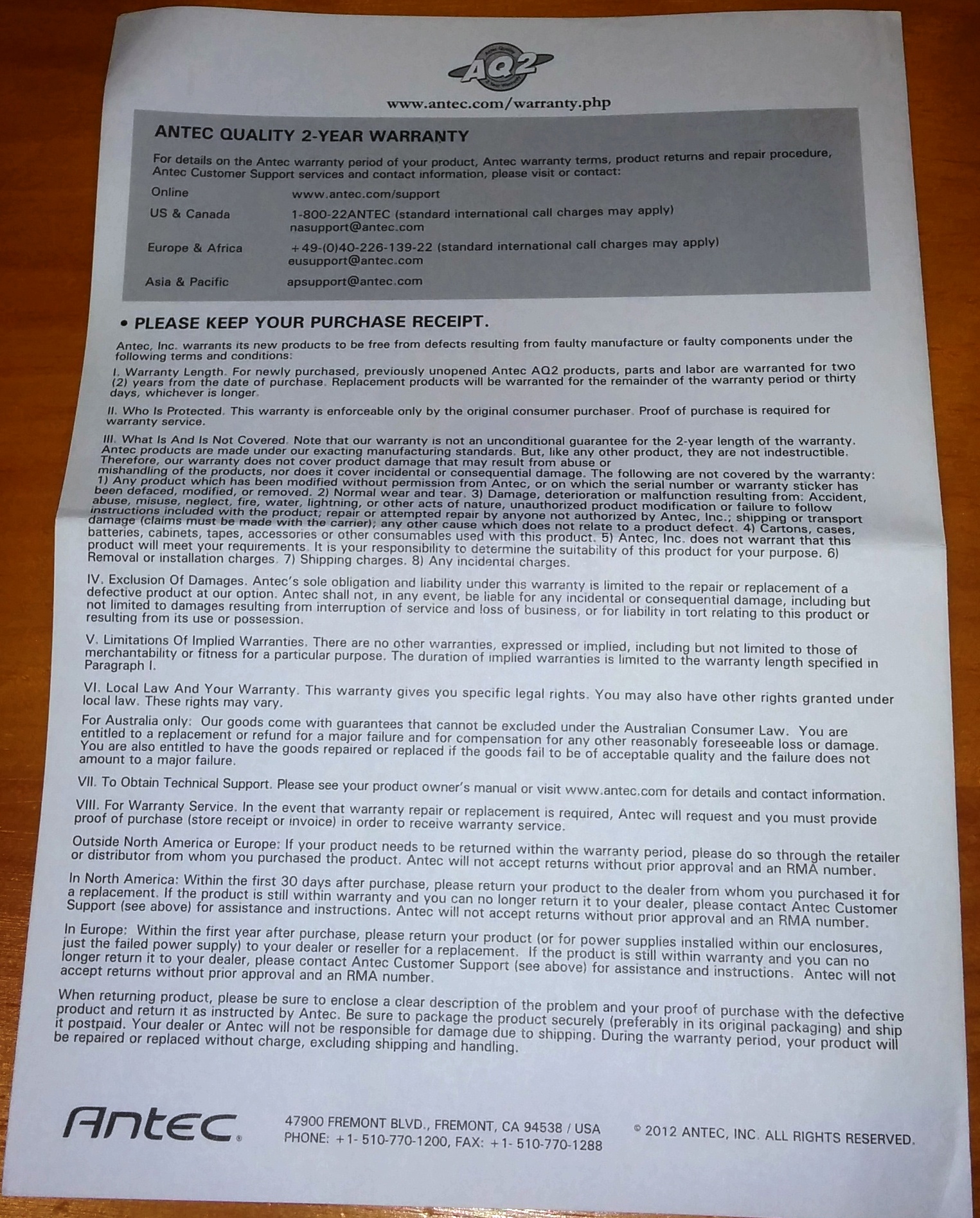 - AQ3 – Calidad Antec de 3 años de garantía y soporte global de 24/7