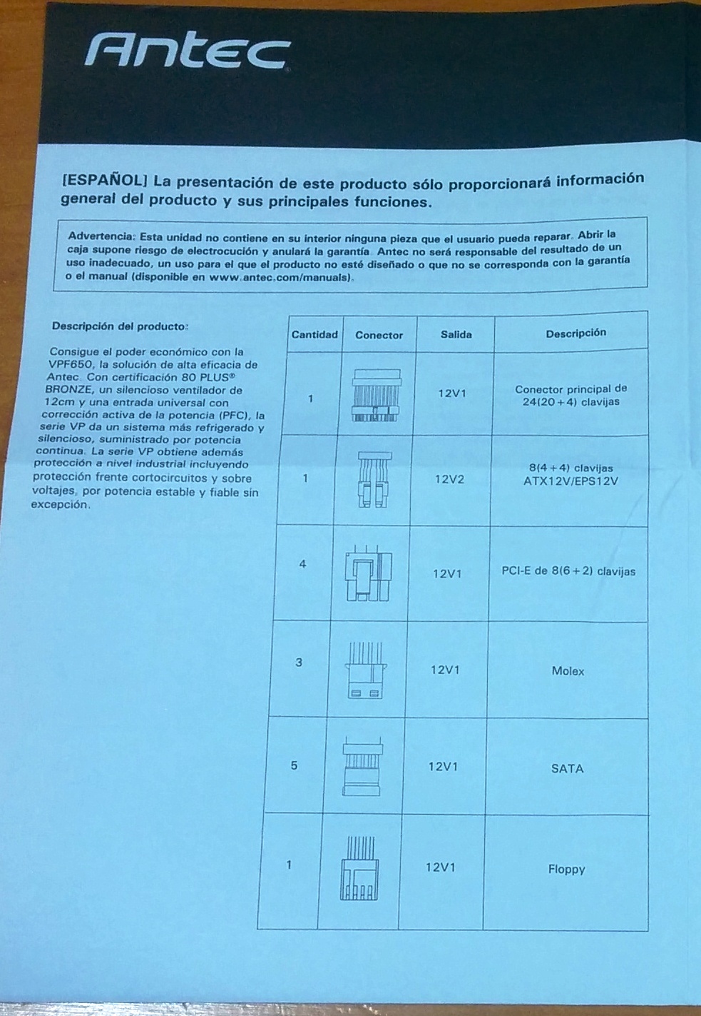 2. PSU Antec VPF650: Embalaje y contenido