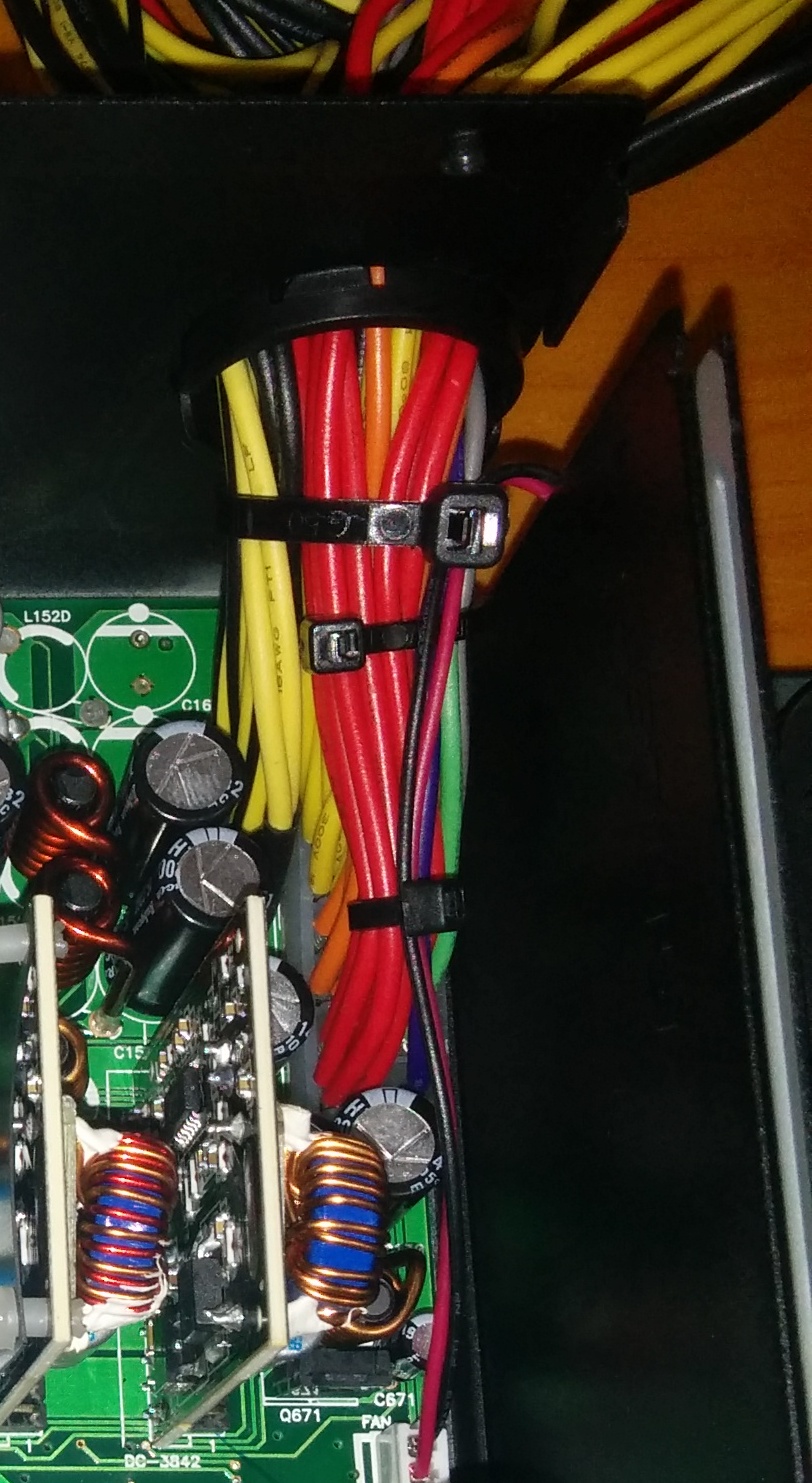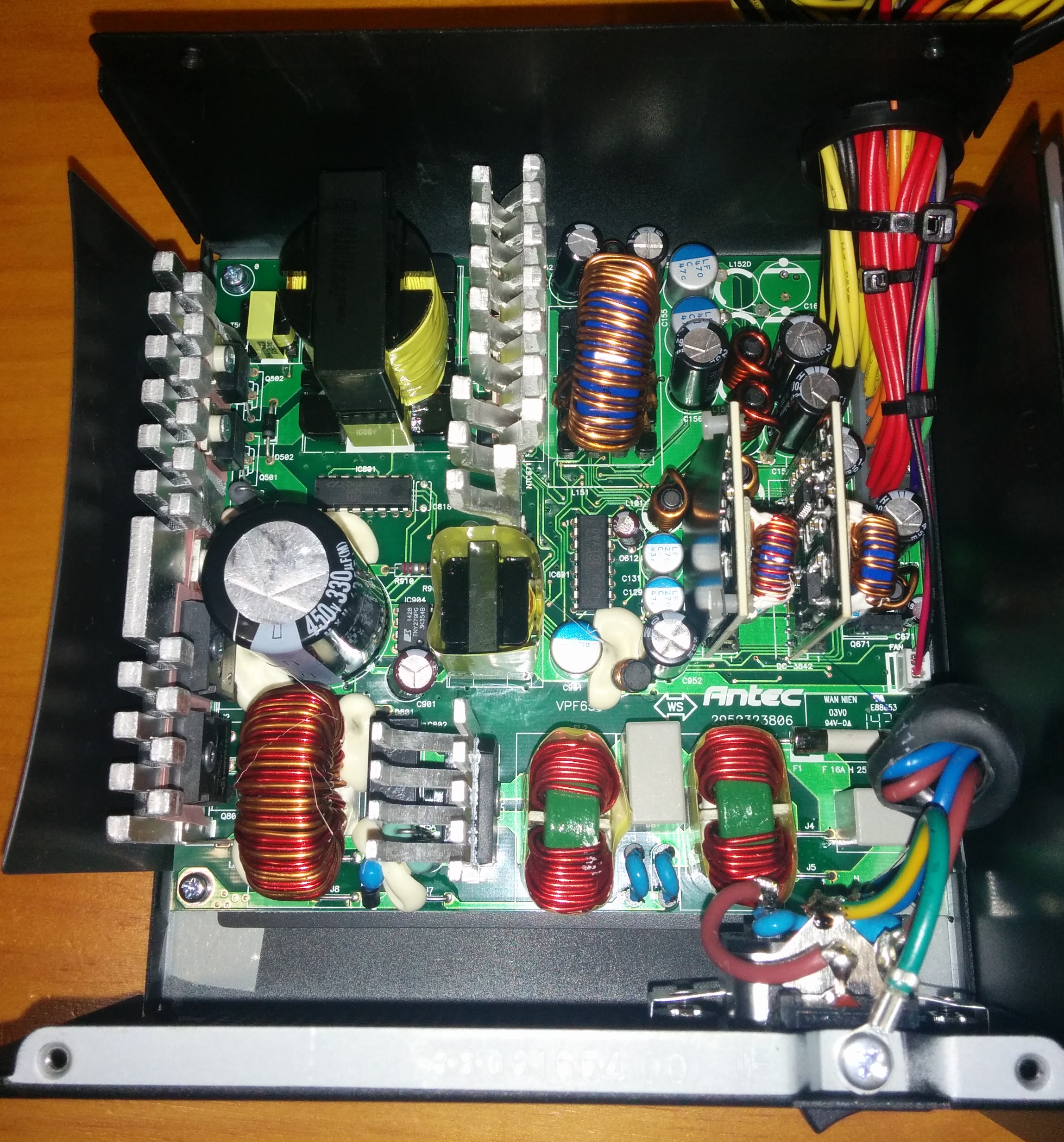 La tapa es Rubycon, etiquetada en 105ºC con una potencia de 450 V y 330 mF. Solamente los componentes pasivos se utilizan en el lado secundario. Los activos son más caros pero ofrecen una eficiencia mucho mayor. Así, el raíl de +12V es manejado por cuatro rectificadores SBR STPS40M60CT. Las protecciones IC son brindadas por un DDG-ready IC Infinno IN1T406.