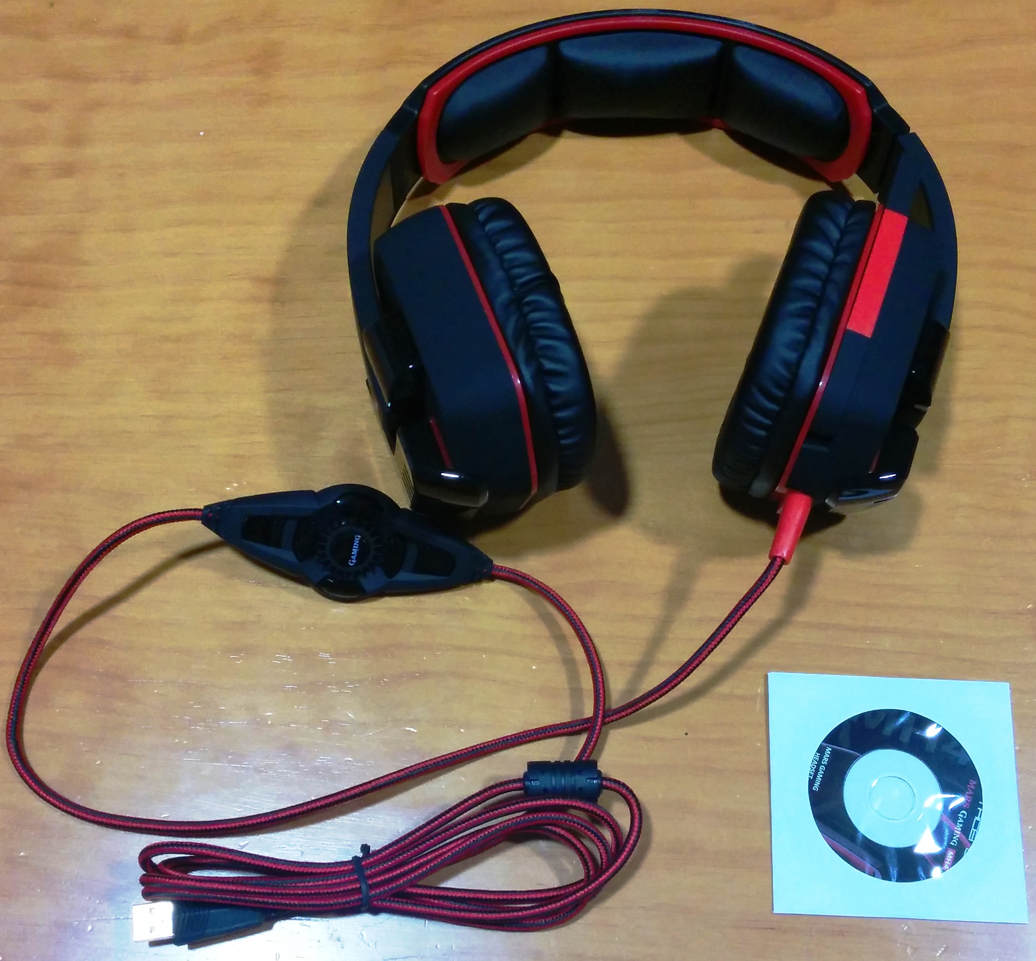 Contenido de la caja: auriculares Mars Gaming MH4 y el mini CD de instalación y software de configuración.