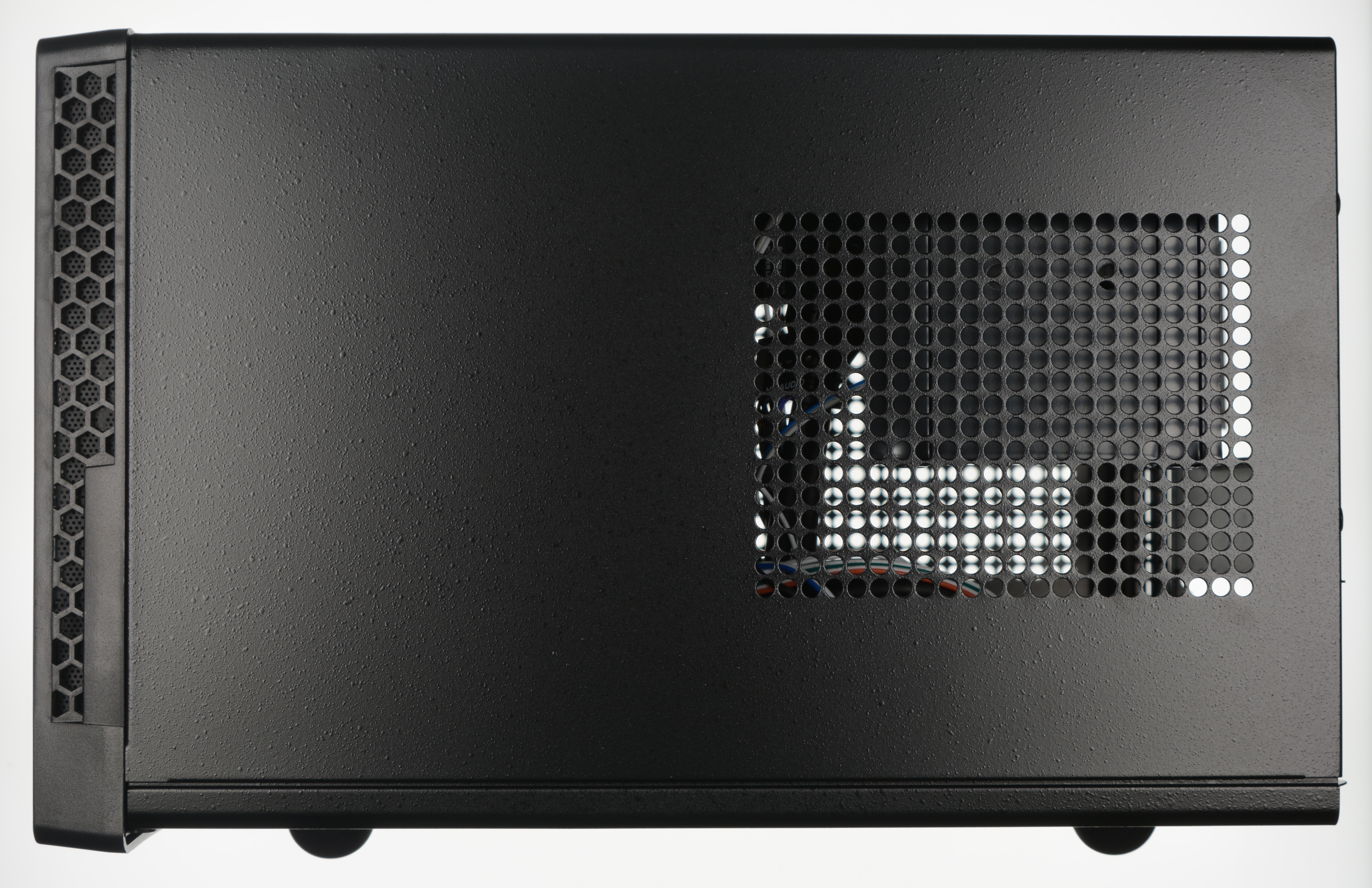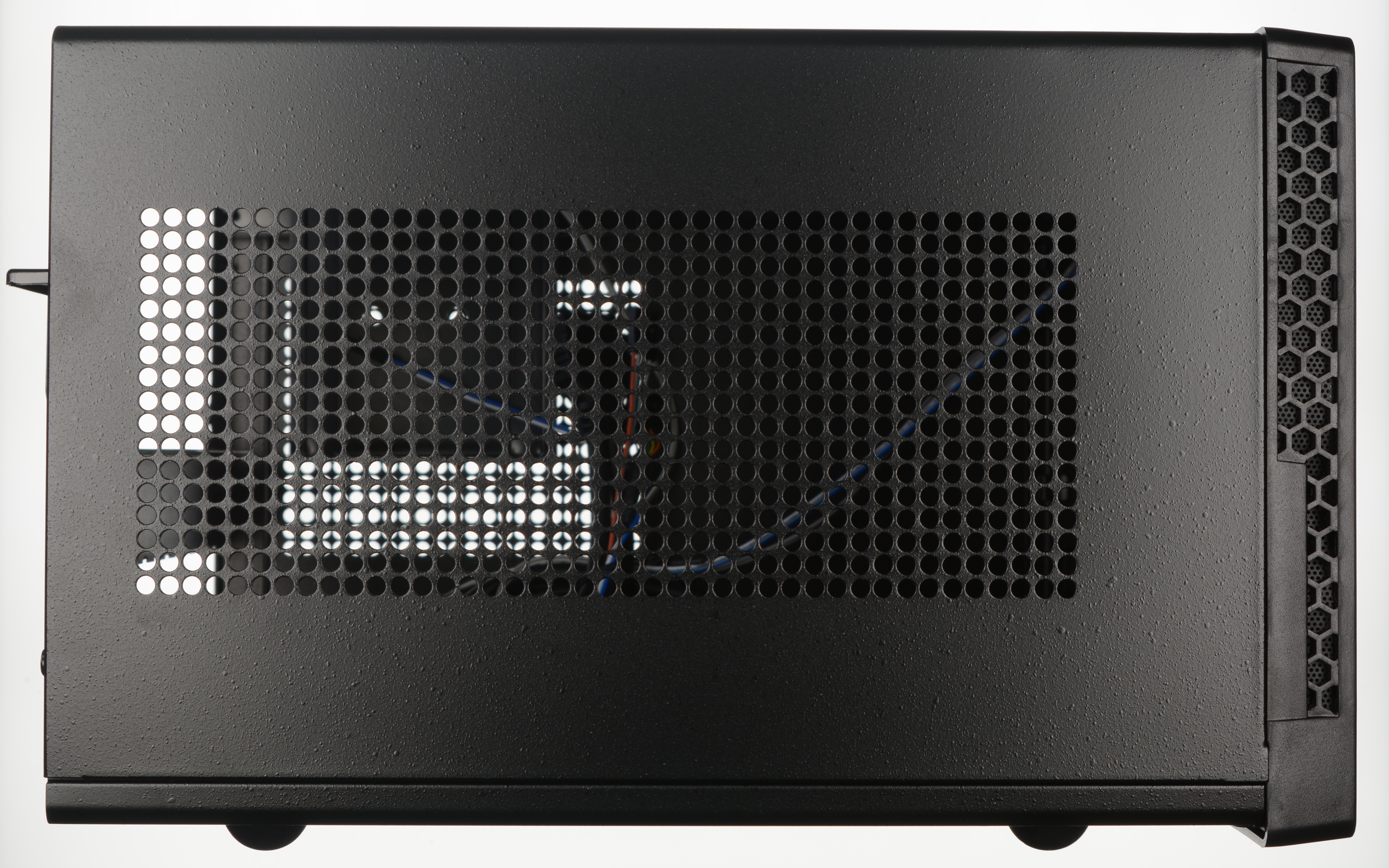 Como se puede apreciar, con la SG13 no habrá problemas de que en su interior se acumule aire caliente debido a todos los orificios que posee. En el lateral que más cerca está la tarjeta gráfica (si se pone dedicada), prácticamente está toda perforada, mientras que en el otro lateral solo está perforada un trozo en la parte trasera, la zona aproximada donde se encuentra el disipador del procesador.