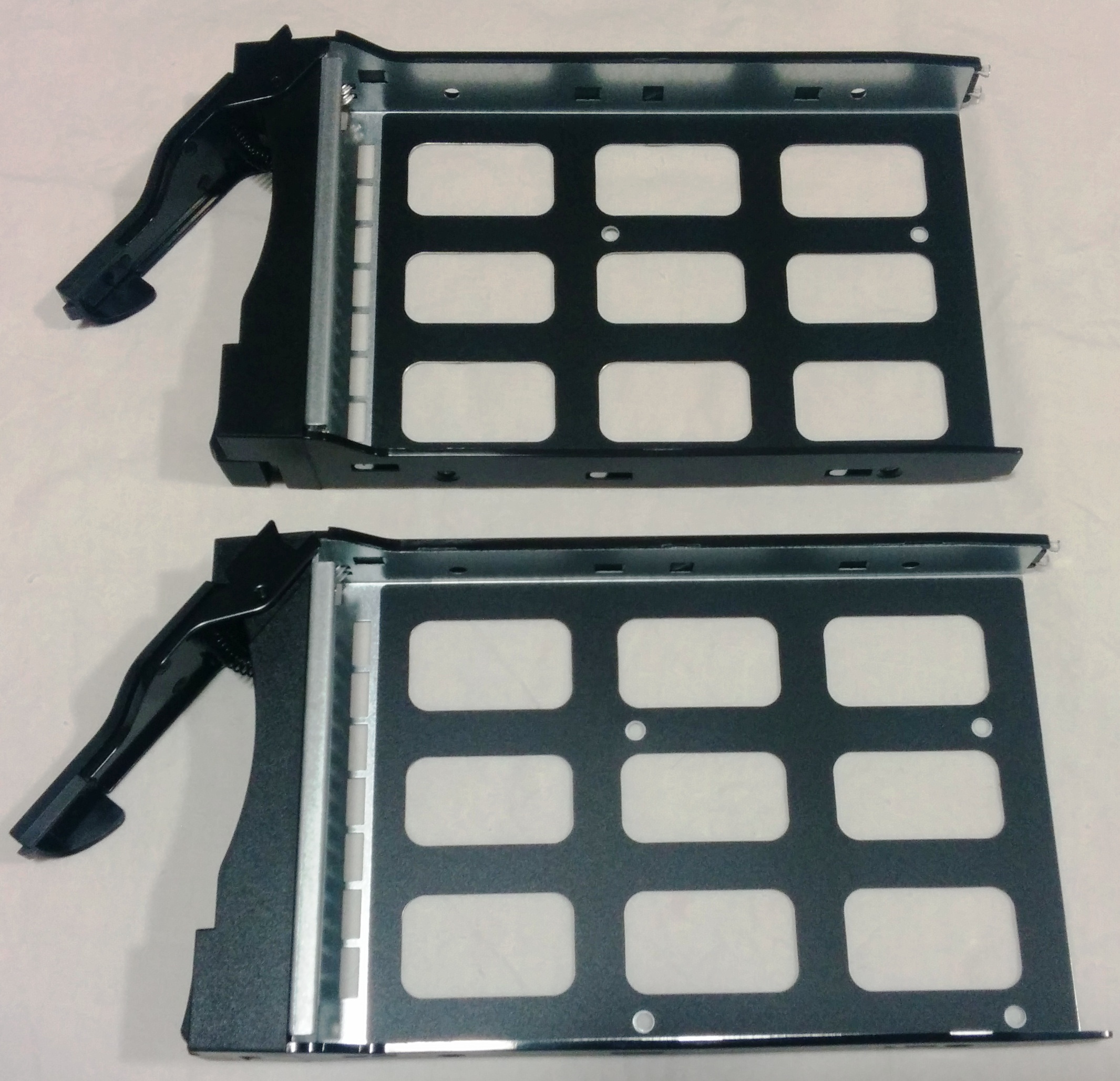 Estas bandejas permiten la instalación de unidades de almacenamiento SATA II/III con factor de forma de 3.5 pulgadas y 2.5 pulgadas, por lo que también soporta discos de estado sólido (SSD). Ambas bandejas tienen un chasis de metal y en la parte de dentro tiene una capa aislante de plástico para evitar contactos accidentales de electrónica entre el chasis metálico y el disco duro instalado.