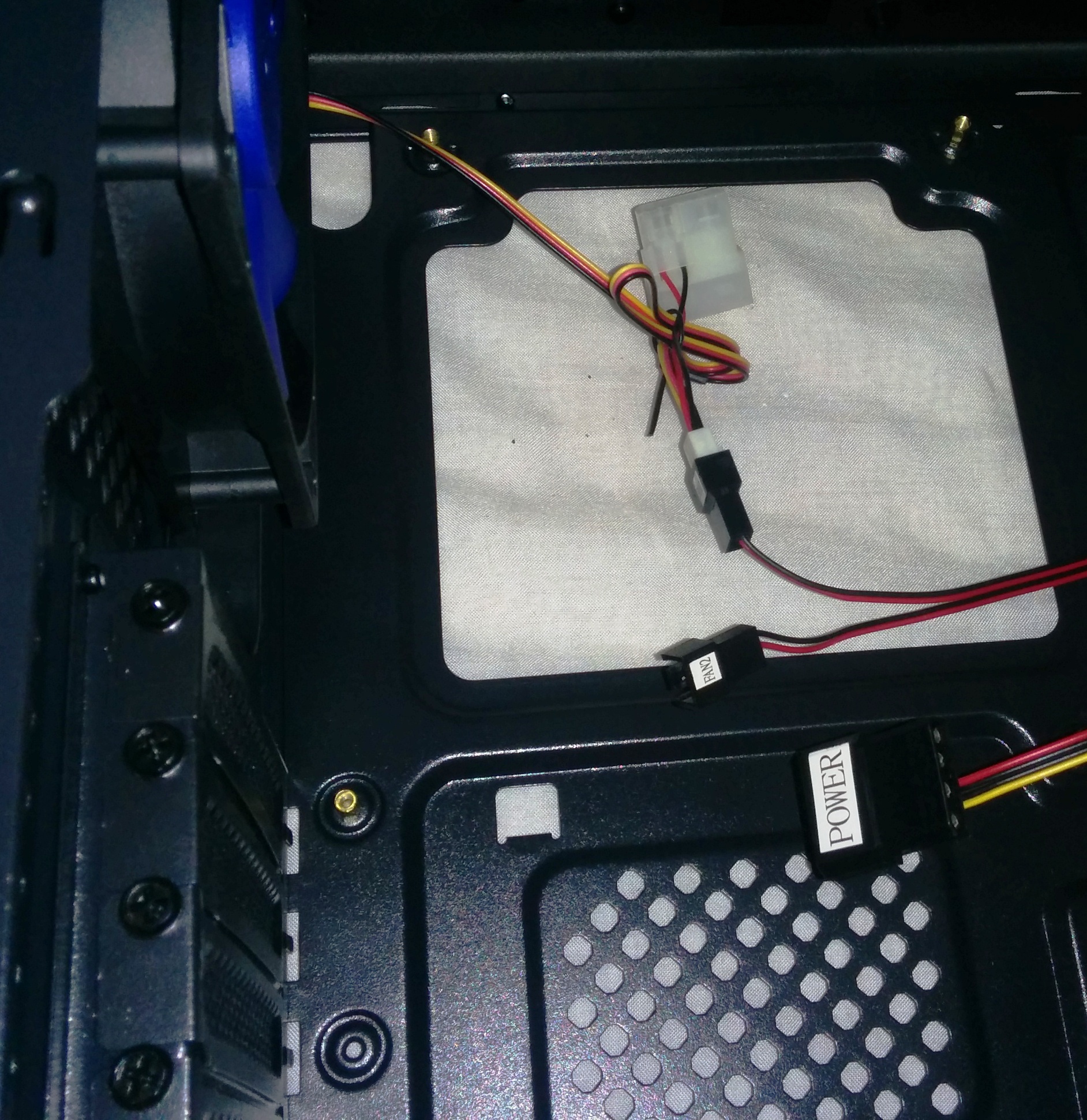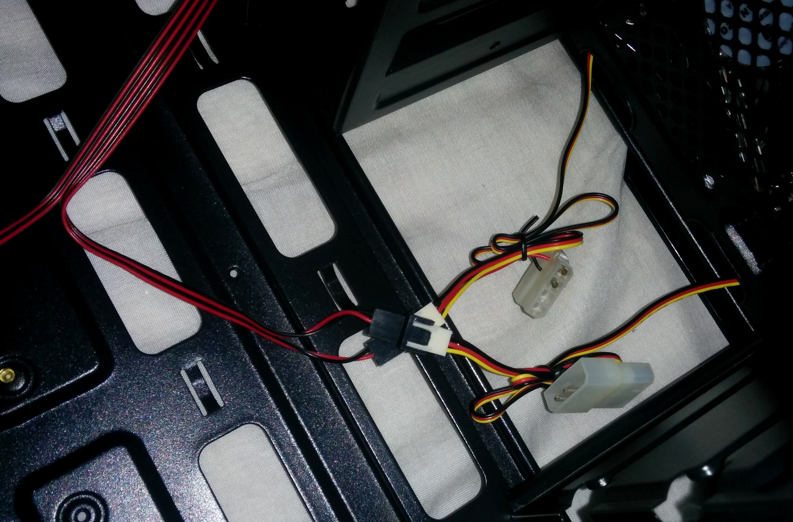 Los otros cables que existen son de los ventiladores preinstalados y de los controladores de velocidad que trae en el panel frontal-superior que ya nombramos anteriormente. Si se quieren utilizar los controles que ofrece la carcasa, únicamente habría que conectar a la fuente de alimentación el conector molex de 4 pines que pone «Power», pero sino se podrían conectar bien a los conectores de 3-4 pines que pueden ofrecer las placas base, o bien a los conectores molex de la PSU.